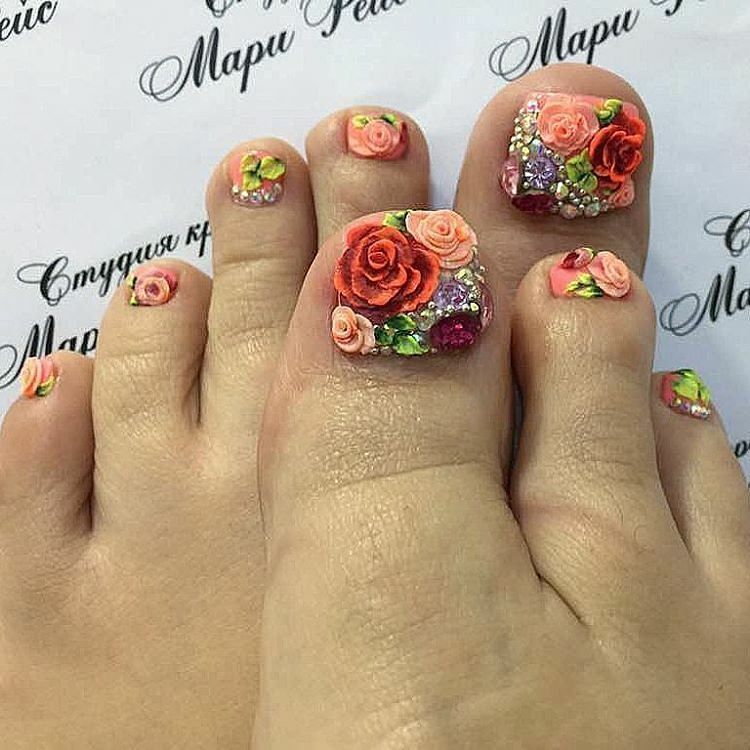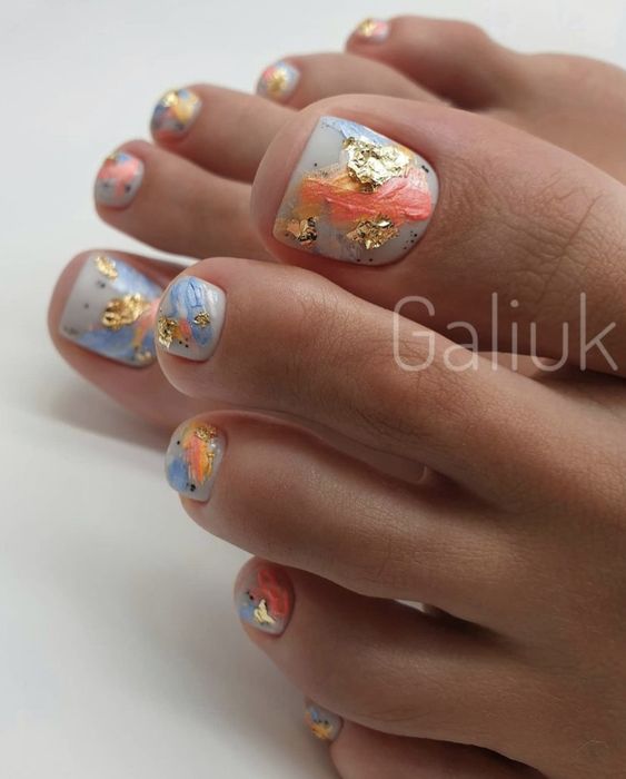Разноцветный педикюр