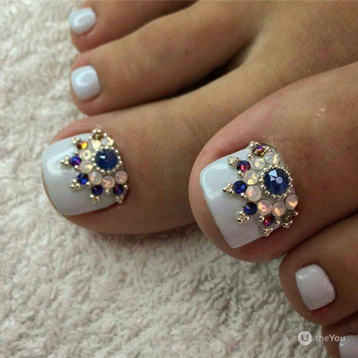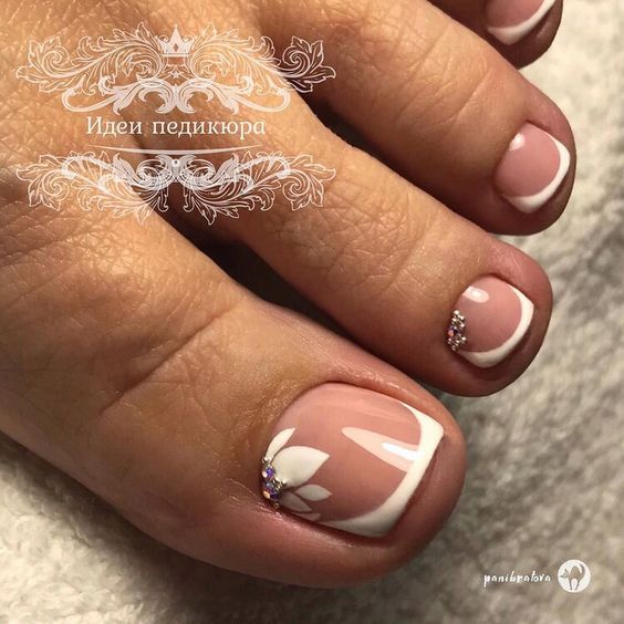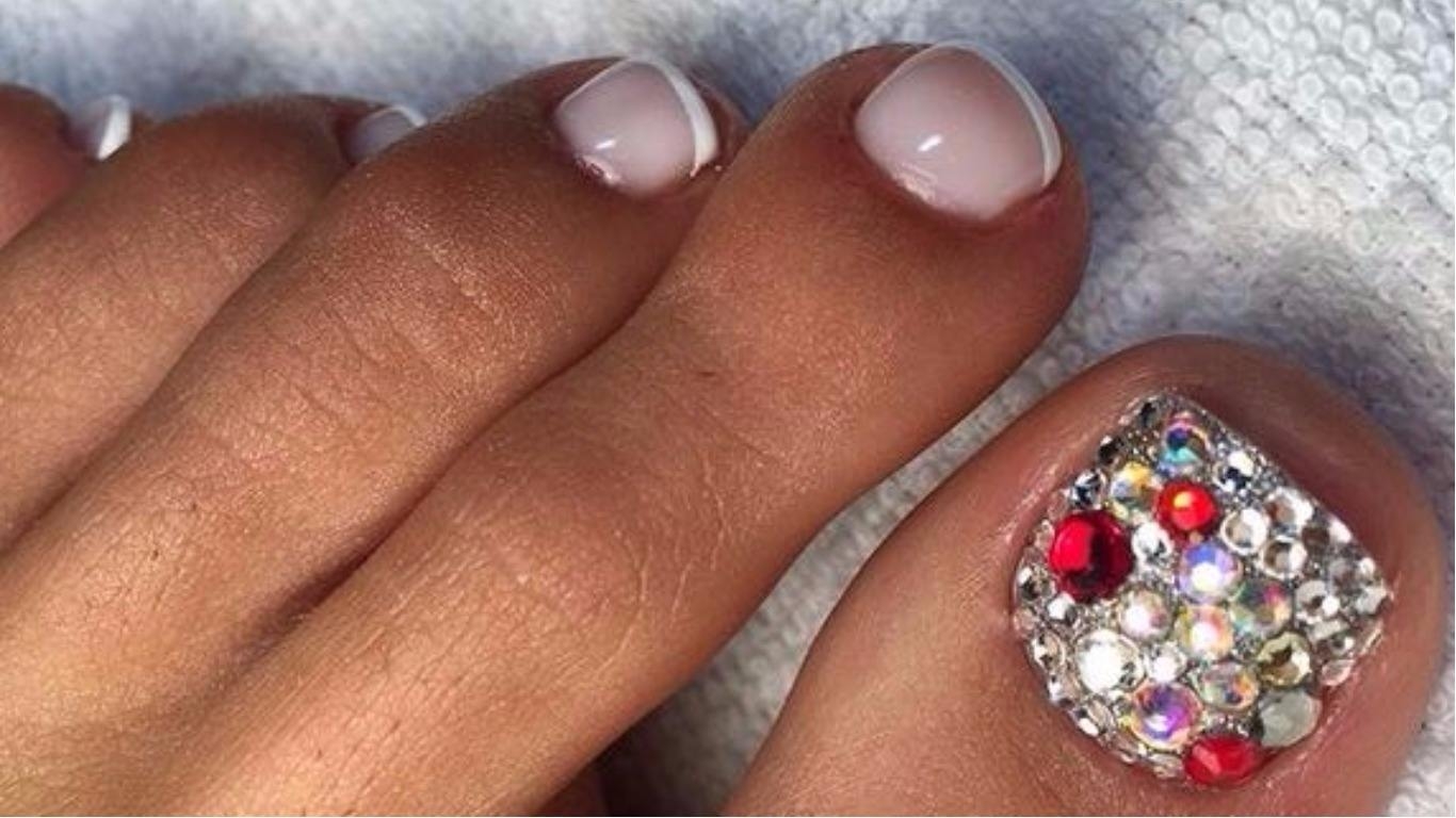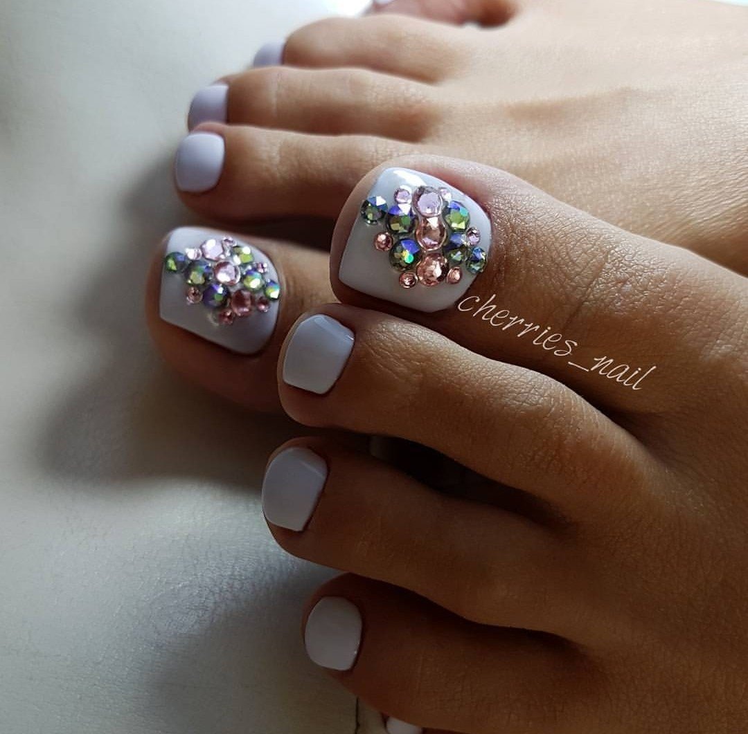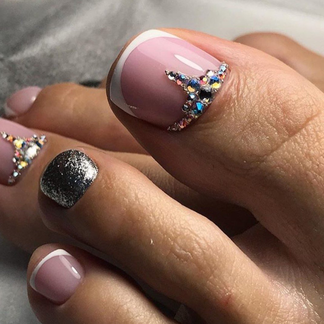 Во — первых, такие объемные элементы на ногах создают очень серьезные неудобства. Прежде всего придется очень тщательно подбирать обувь, чтобы не возникало трения сжатия и других неприятных моментов. И тем не менее может случиться ситуация, когда ремешок или какая-то деталь обуви может травмировать ноготь. Кроме того, стильный педикюр и стразы не совместимы. Украшения с камнями лучше оставить для маникюра.