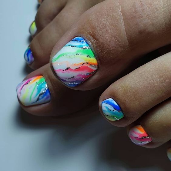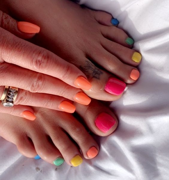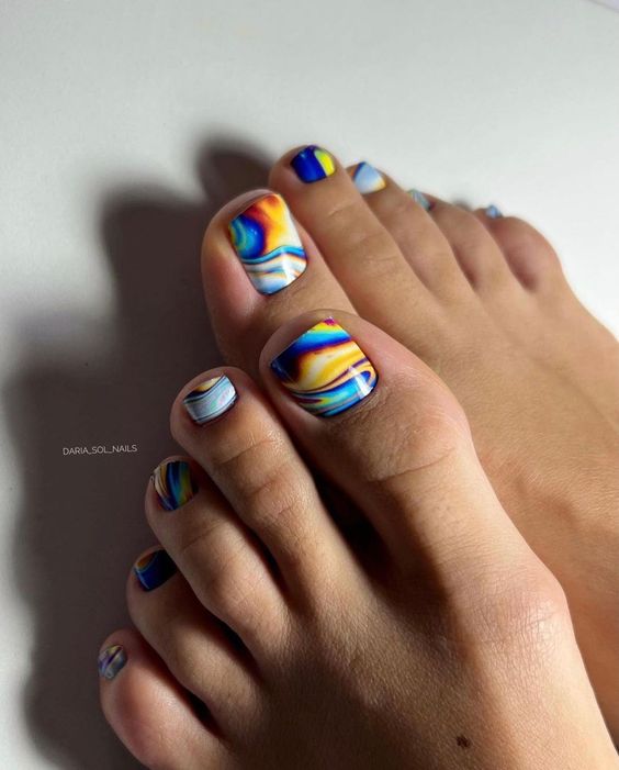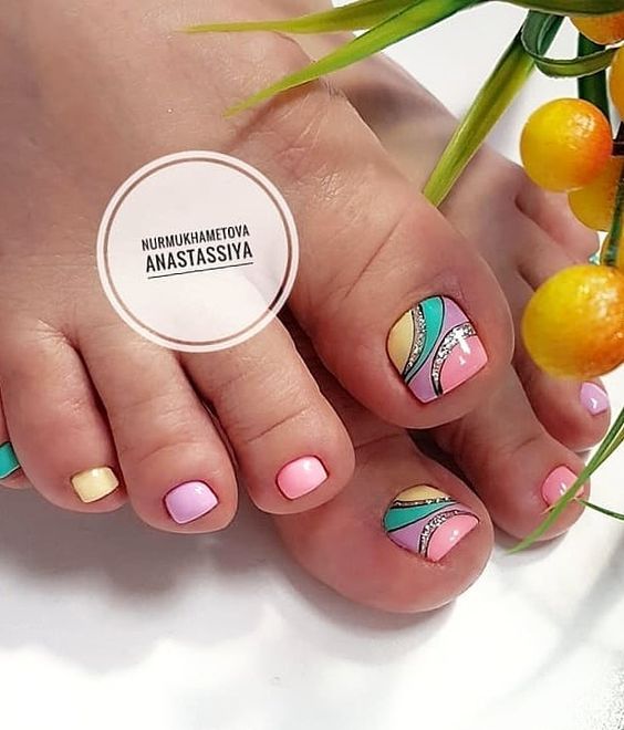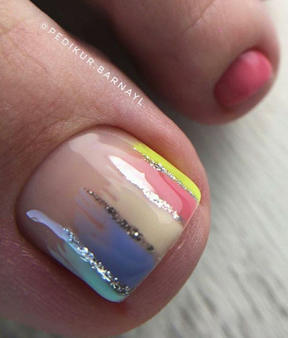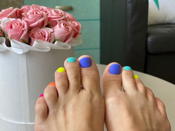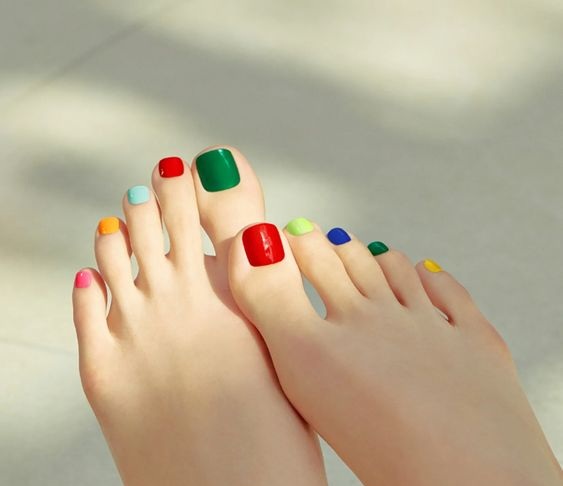 - Разноцветный педикюр