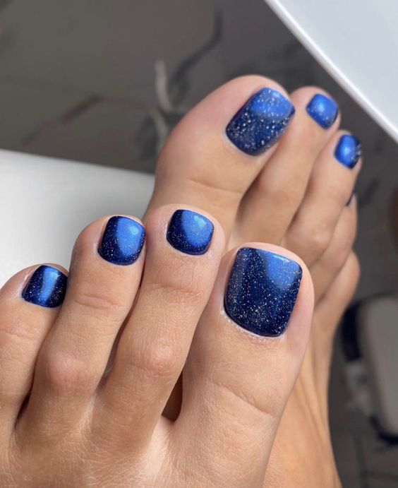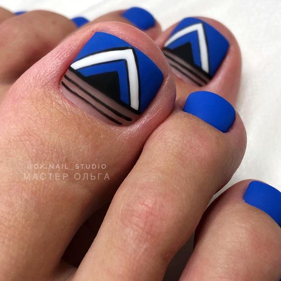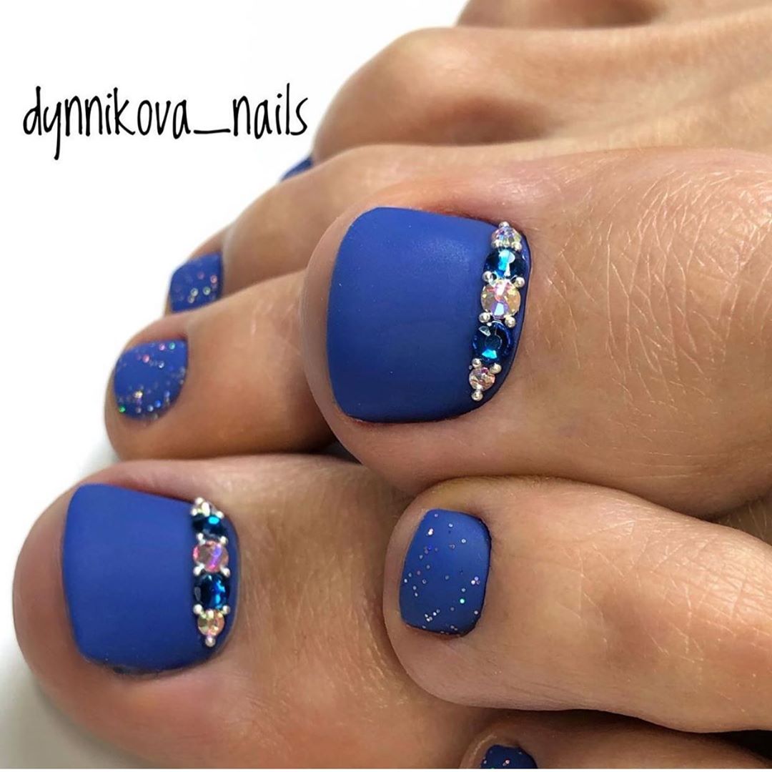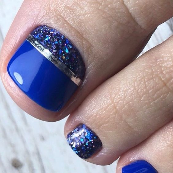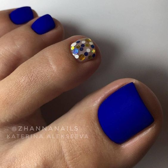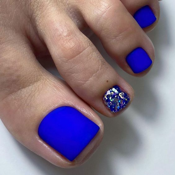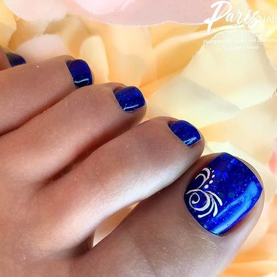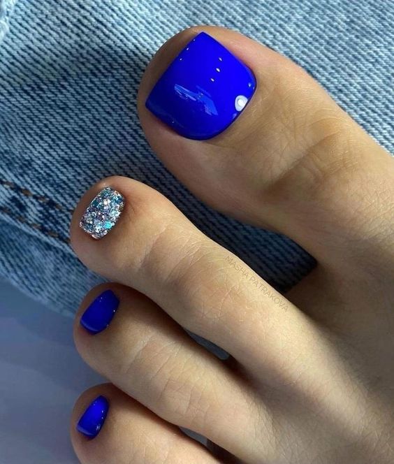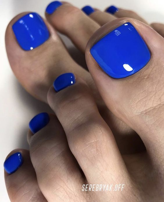 Палитра синего не менее богата, чем у других цветов. В этом сезоне список трендов возглавляет оттенок синий электрик. И вообще стильный педикюр немыслим без насыщенных синих оттенков.