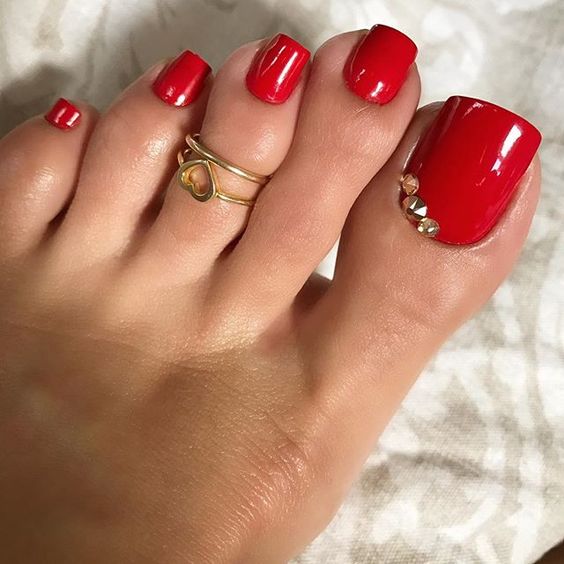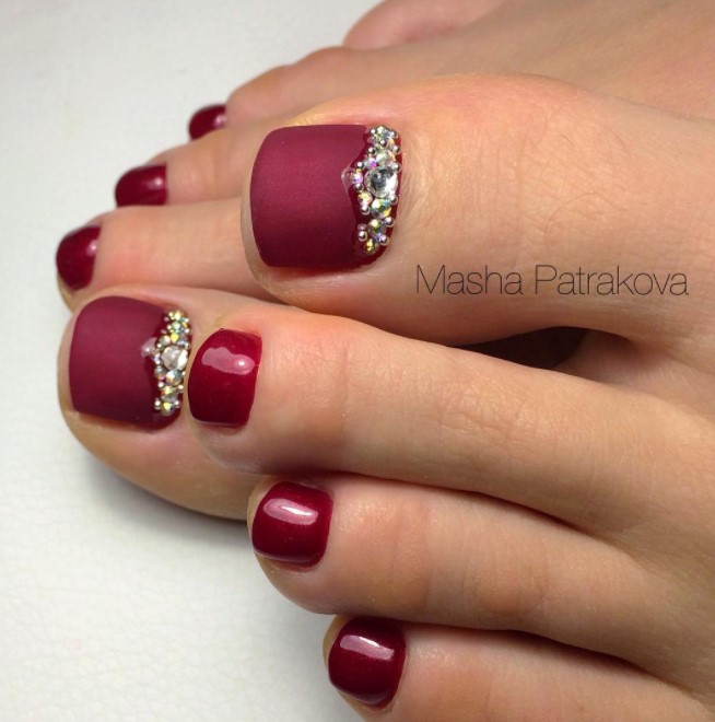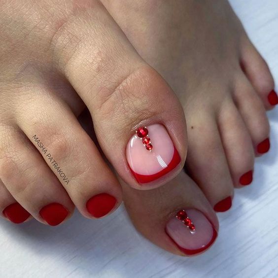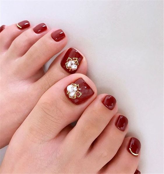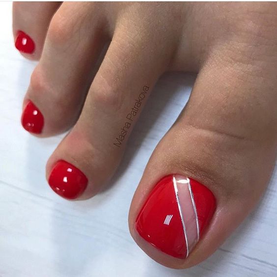 Палитра красного — один из самых популярных и чаще всего встречается в оформлении ногтей на ногах. Этот цвет можно назвать вечной, непреходящей классикой. Но при этом каждая модница знает, что у красного есть огромное количество оттенков. Его палитра — одна из самых богатых. Конечно, вы можете выбрать любой оттенок, которая нравится вам. Но мы знаем, что самые популярные — это алый красный, идеальный классический красный, а также все глубокие оттенки. Например, винный, марсала, вишневый и другие.