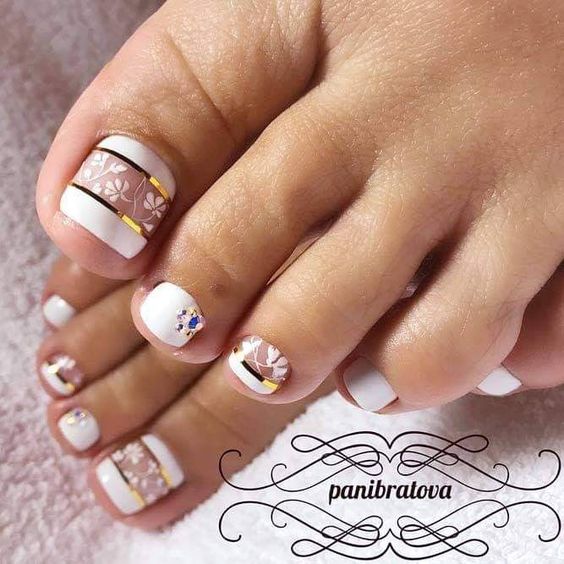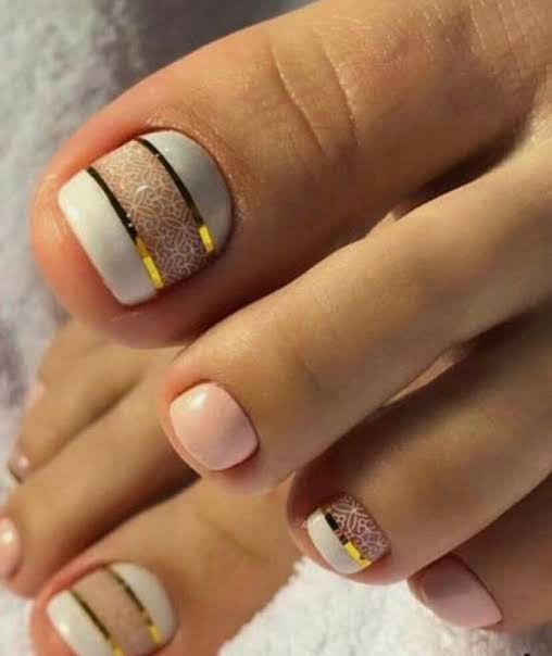Этот вариант можно отнести к самым спокойным универсальным. Такие оценки стоит выбирать, если вы не можете определиться, какой сделать педикюр. Но при этом вам хочется, чтобы он был очень стильным и модным. Какие оттенки подойдут для создания интересного дизайна, который подойдет под любую открытую обувь.