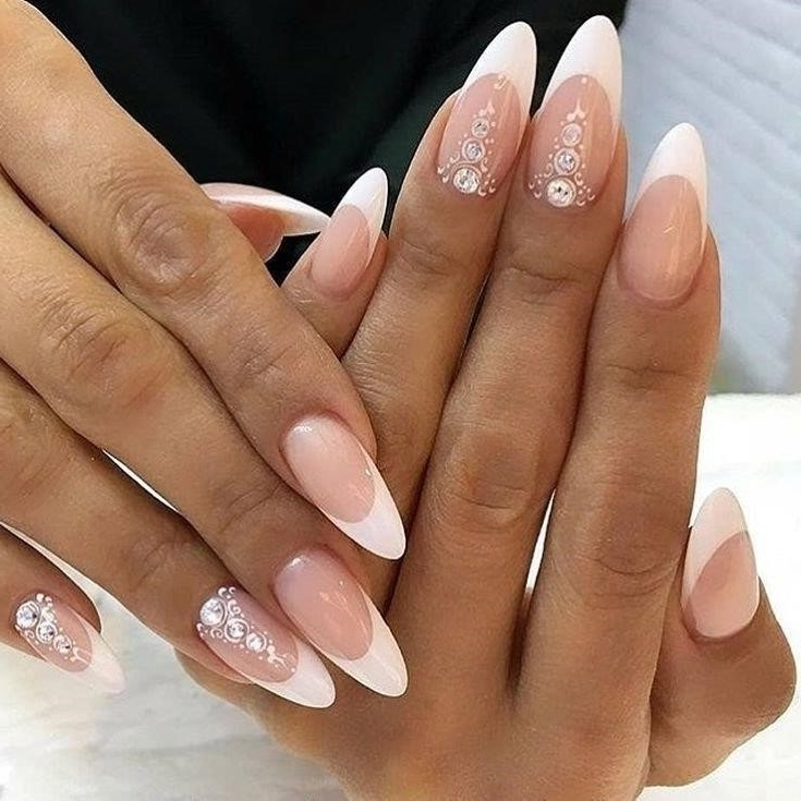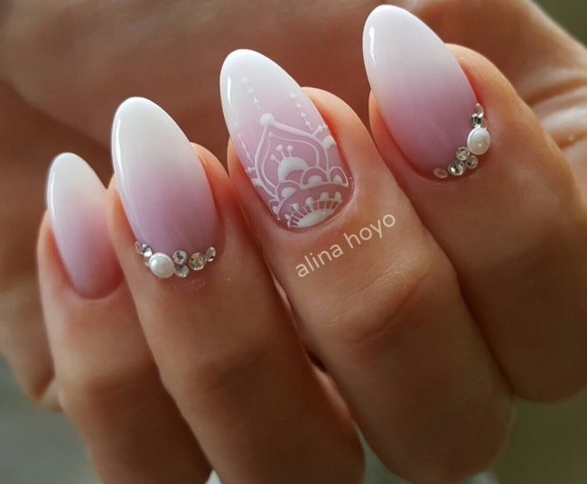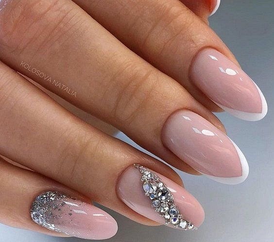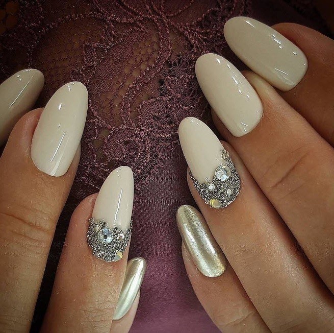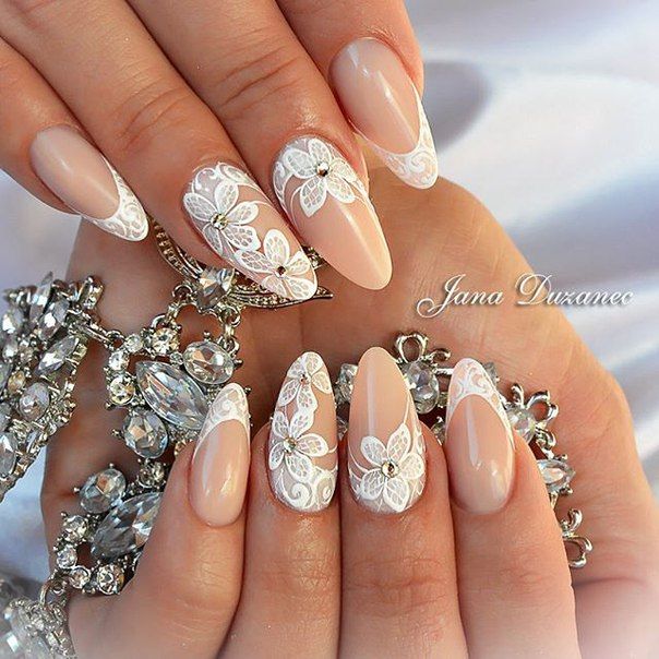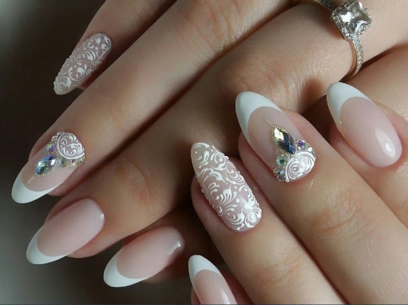 Миндаль считается самой распространенной формой ногтей, а кроме этого еще и самой универсальной. Именно на ней эффектнее всего будет смотреться свадебный вариант маникюра.
