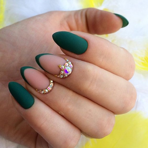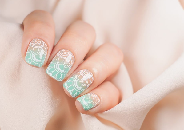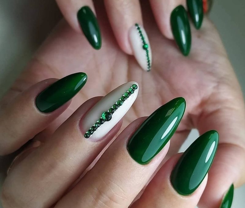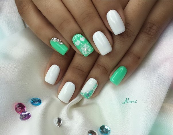 Свадьба состоится летом или весной? Зеленые или салатовые тона просто незаменимы в дизайне — рисунки цветов, веточек, листьев. Добавьте белого, серебряного или золотых страз на зеленый френч.