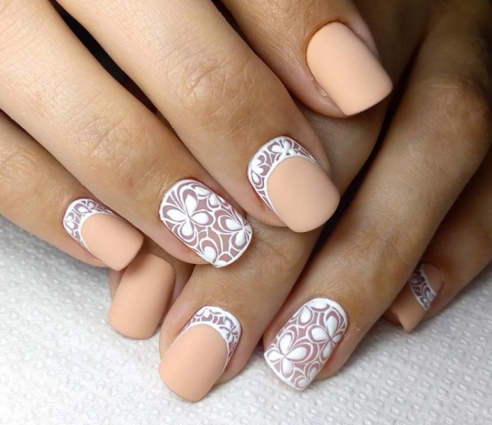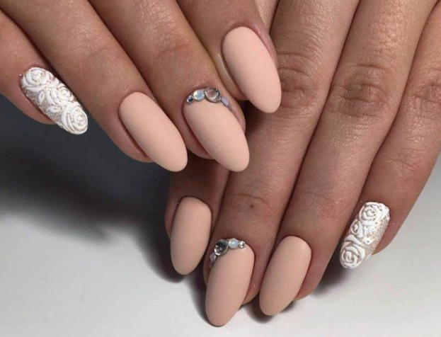 Матовый свадебный маникюр