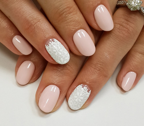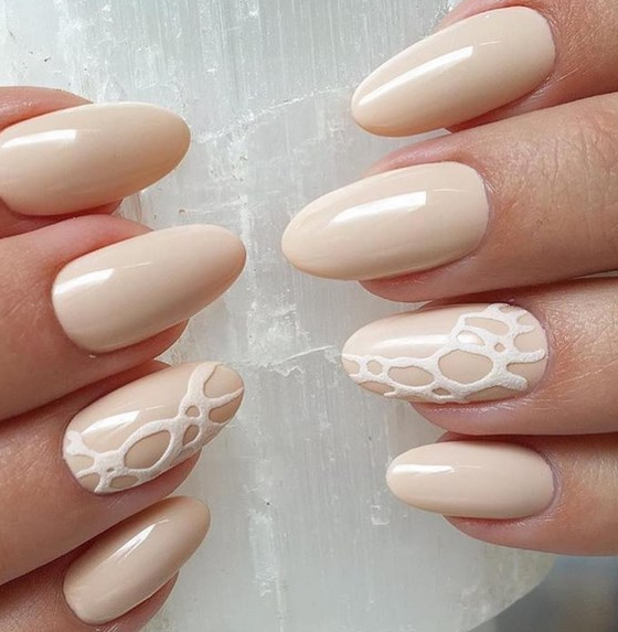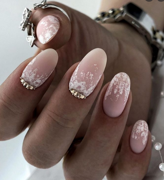 Несомненный тренд сезона 2026 — кружево на ноготках новобрачной. В качестве базы может быть выбран любой нюдовый оттенок. Кружево же обычно выполняют в нейтральном тоне — белом, допустим серебряный или золотой вариант.