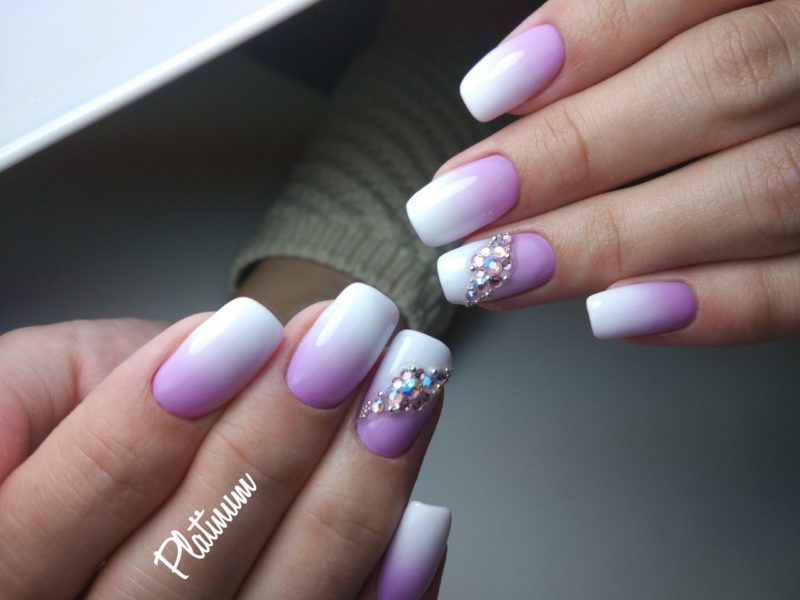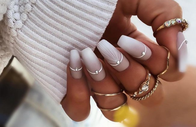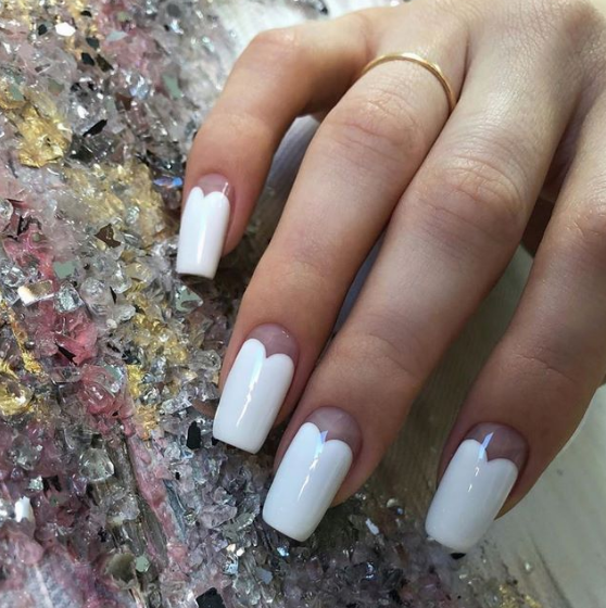 А вот длинные ногти формы квадрат — идеальная база для белого гель-лака и страз.