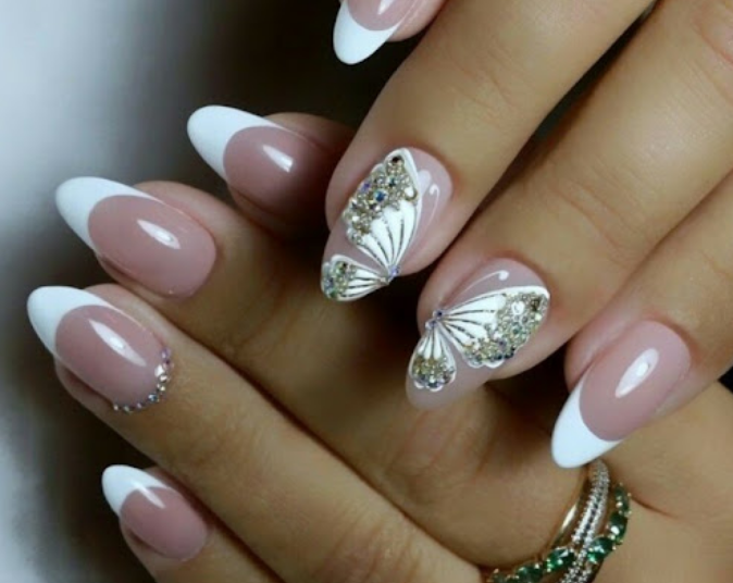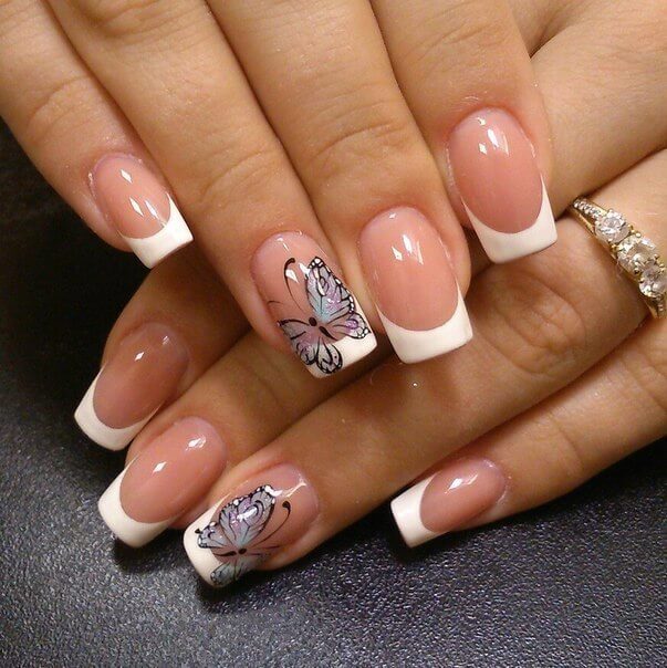 Бабочки — символ лета, безмятежности и романтики. Ноготки невесты украшенные бабочками сделают образ нежным, изящным и прекрасным.