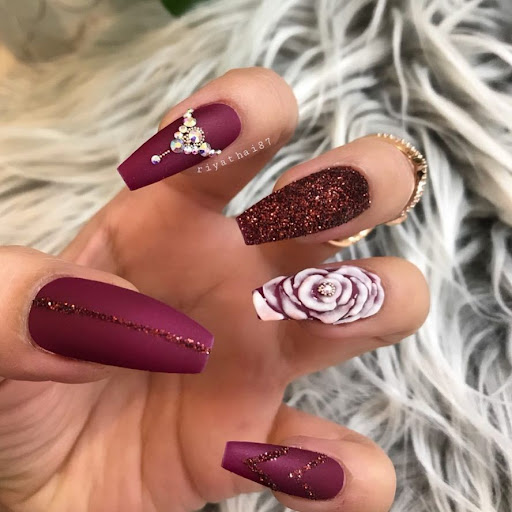 Более спокойные оттенки марсала тоже нашли свое место в маникюре для свадьбы. Идеальные сочетания цветов — с белым, черным, золотом, серебром. Фантазируйте и не бойтесь экспериментов!