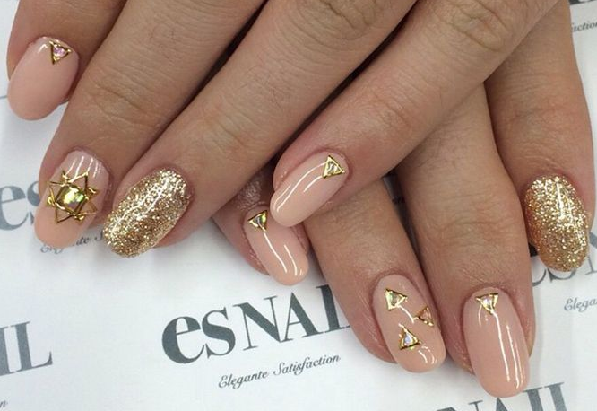 Важно: помните важное правило — чем короче пластина, тем меньшее количество декора должно быть на ней. Лучше, если стразы будут расположены ближе к лунке ногтя. Выделять стоит один или два ноготка. Кроме того — не стоит украшать ноготь пальчика, предназначенного для ношения обручального кольца. Пусть это ювелирное украшение будет единственным, которое будет блистать на безымянном пальце.