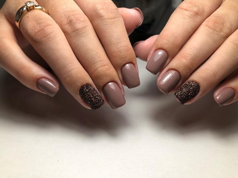 - Коричневый маникюр на короткие ногти