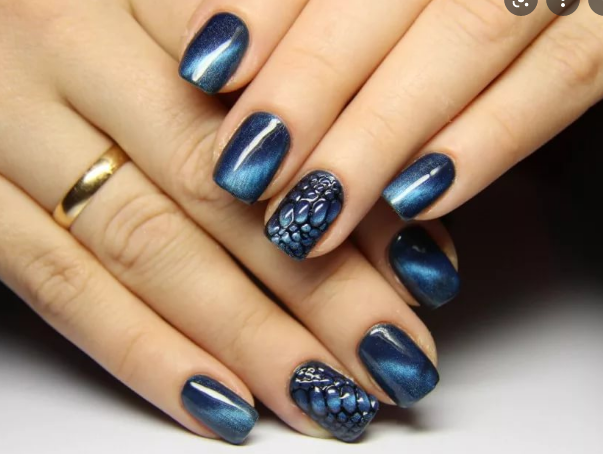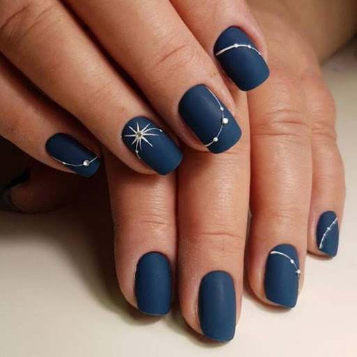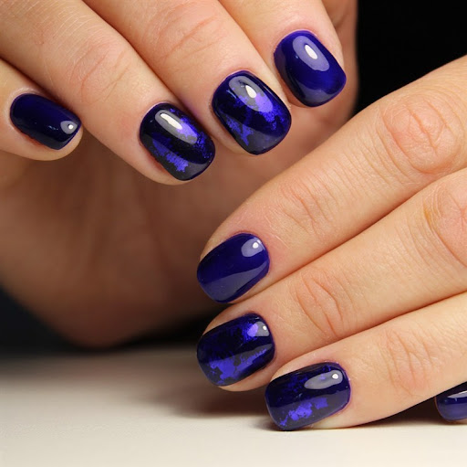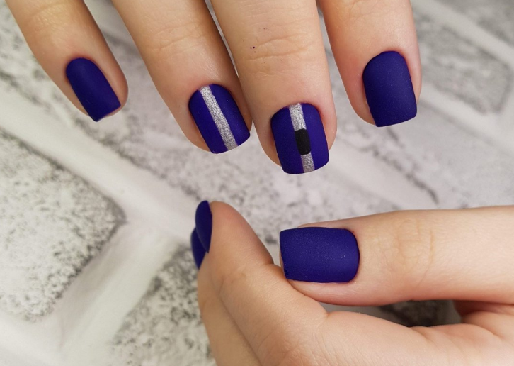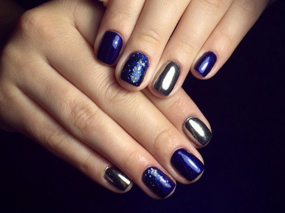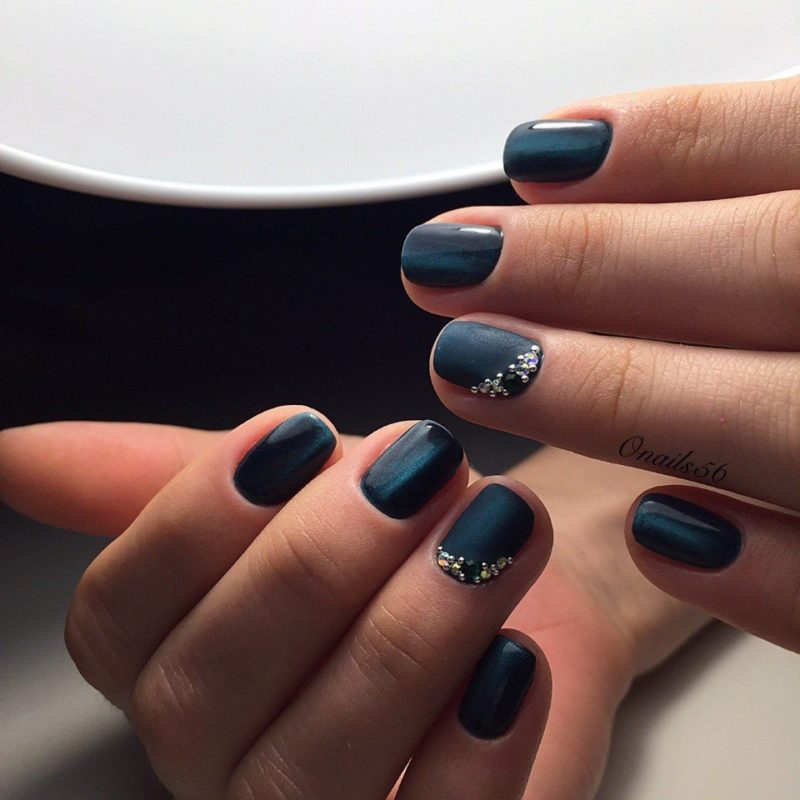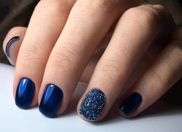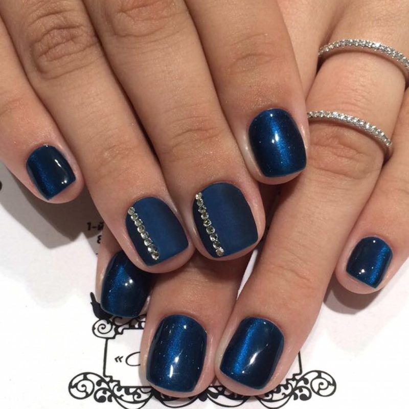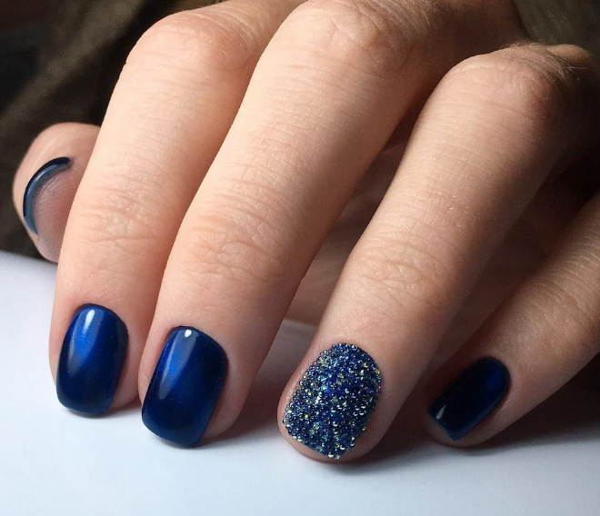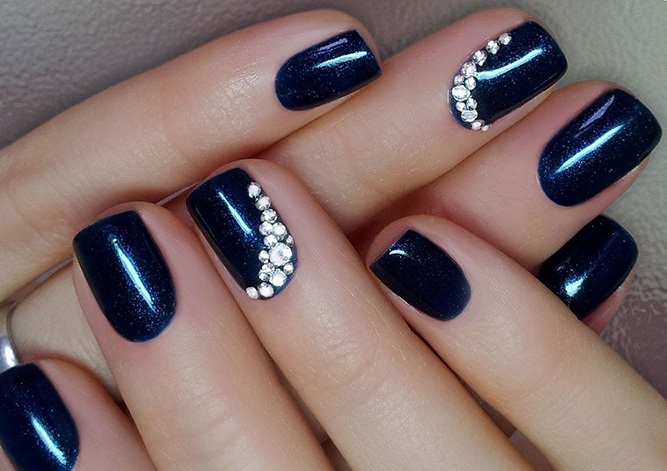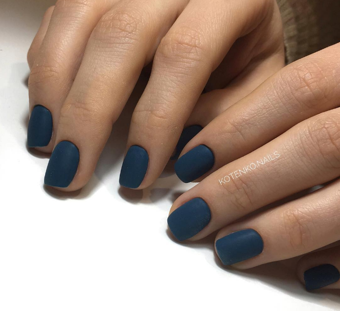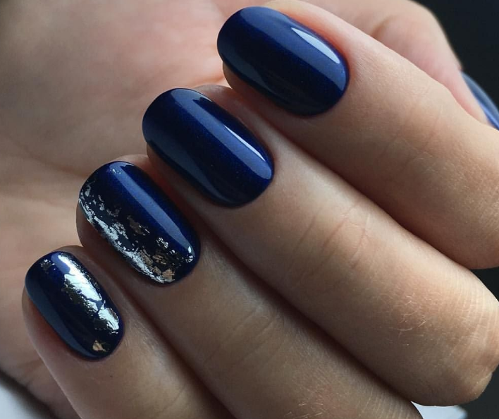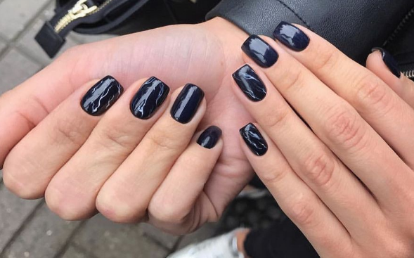 - Темно-синий маникюр на короткие ногти