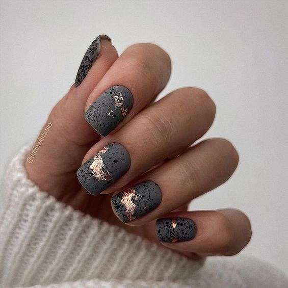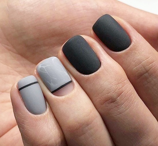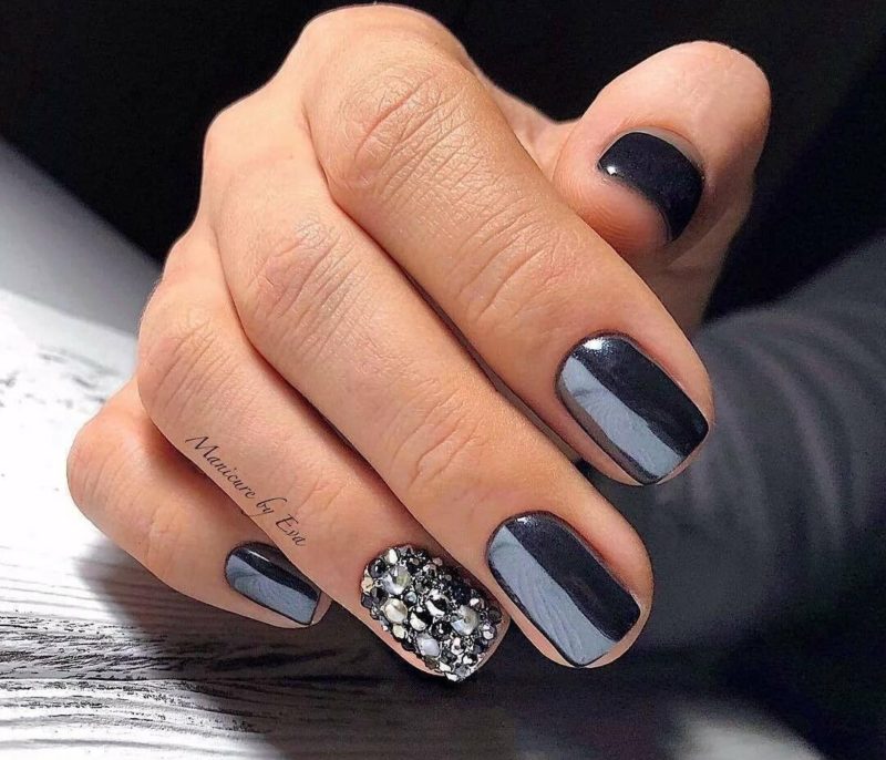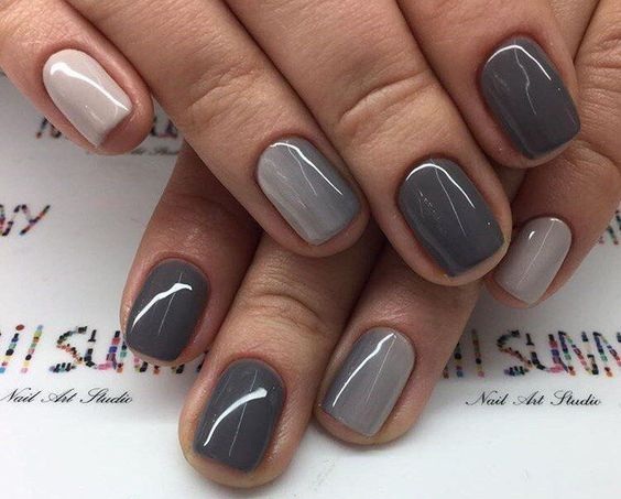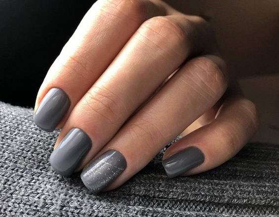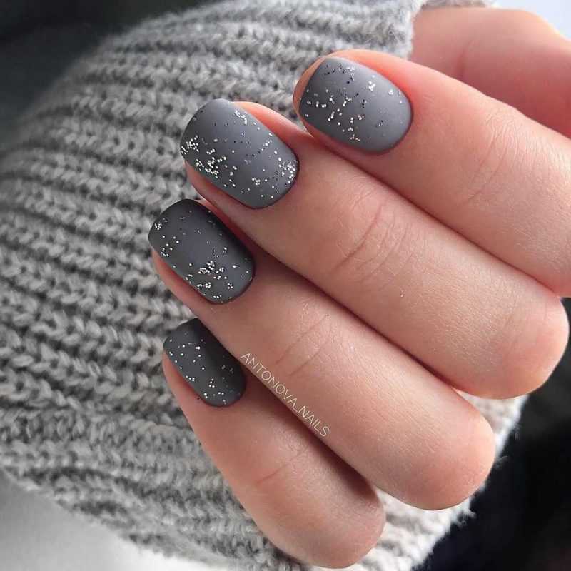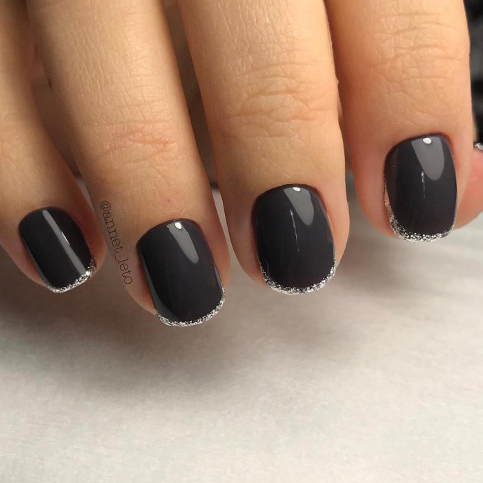 - Темно-серый маникюр на короткие ногти