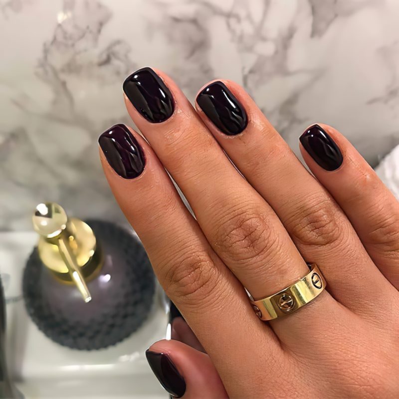 Темно-фиолетовый маникюр на короткие ногти