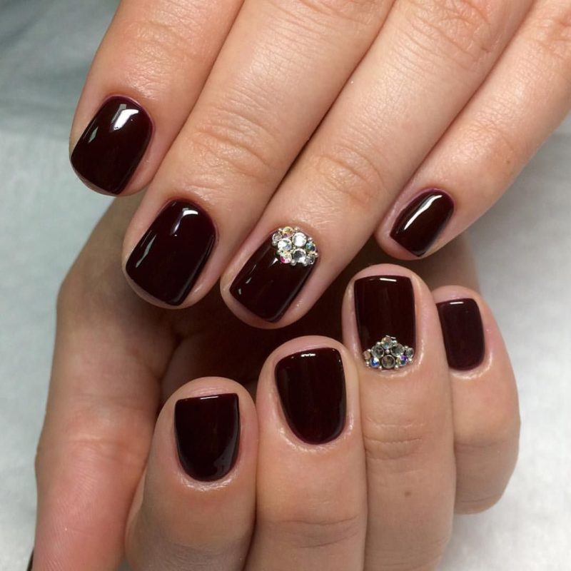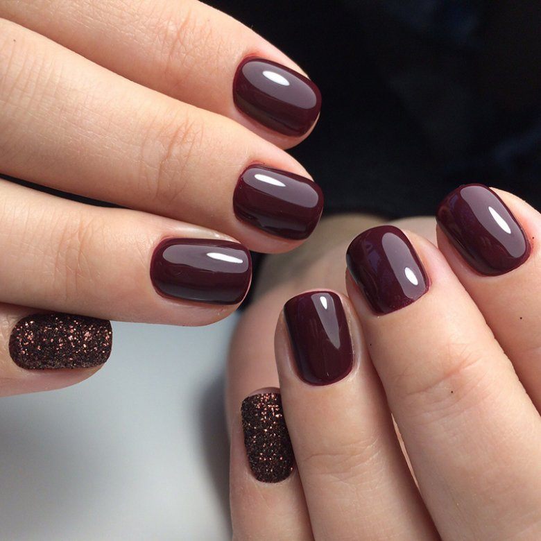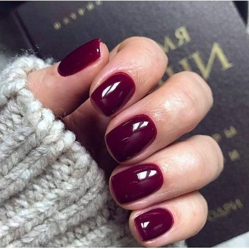 - Бордовый маникюр на короткие ногти