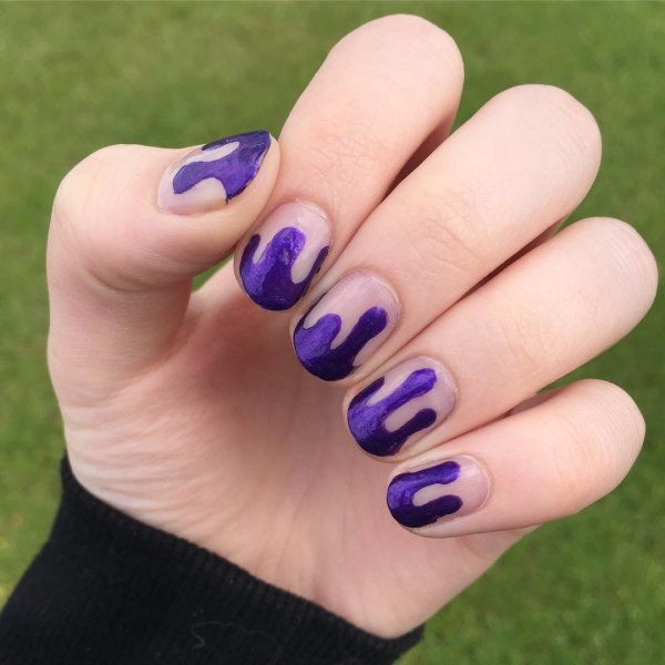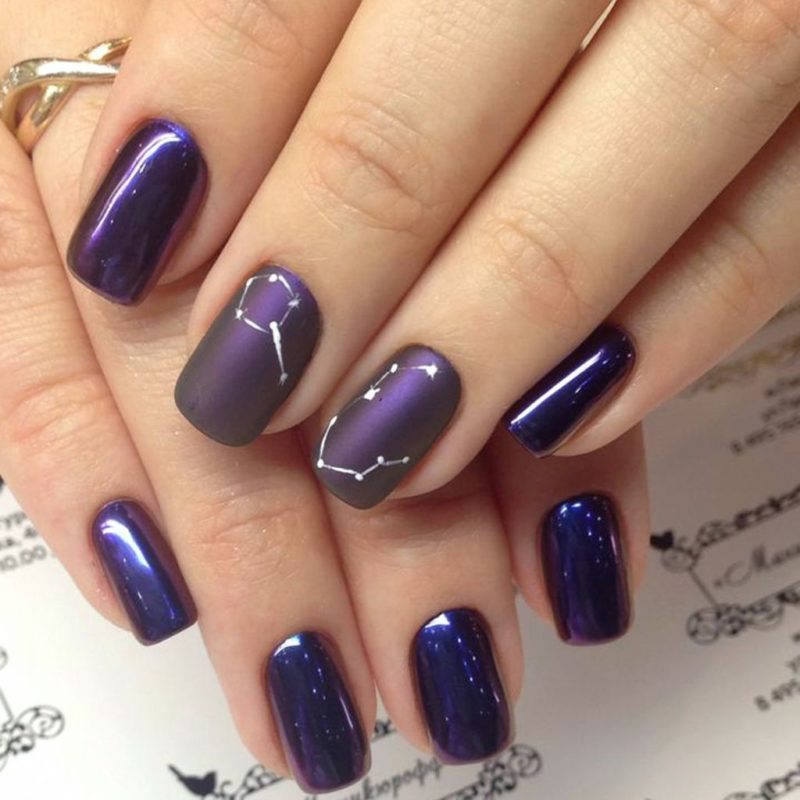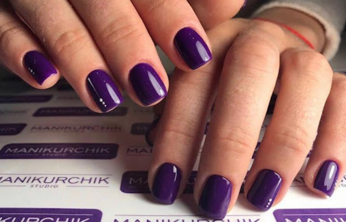 - Темно-фиолетовый маникюр на короткие ногти