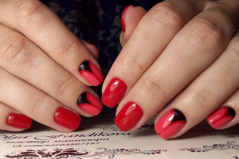 - Темно-красный маникюр на короткие ногти