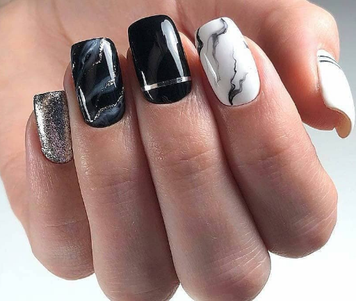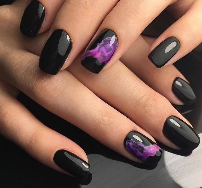 Черный мраморный маникюр на коротких ногтях никогда не выйдет из моды. Такой вариант дизайна придаст стильности, элегантности, новизны, гламура. Такой вариант подойдет для ежедневной носки. Использование разных оттенков только добавит изюминки конечному продукту.
