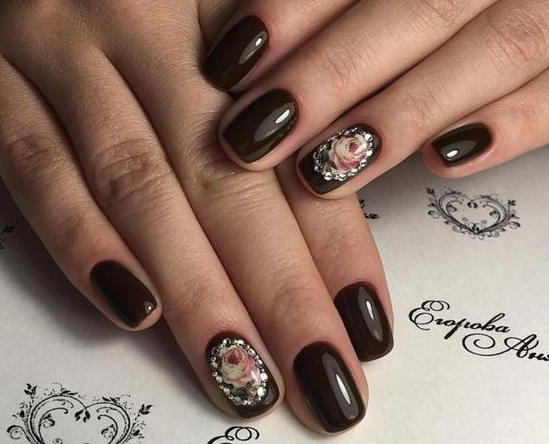 Коричневый маникюр на короткие ногти