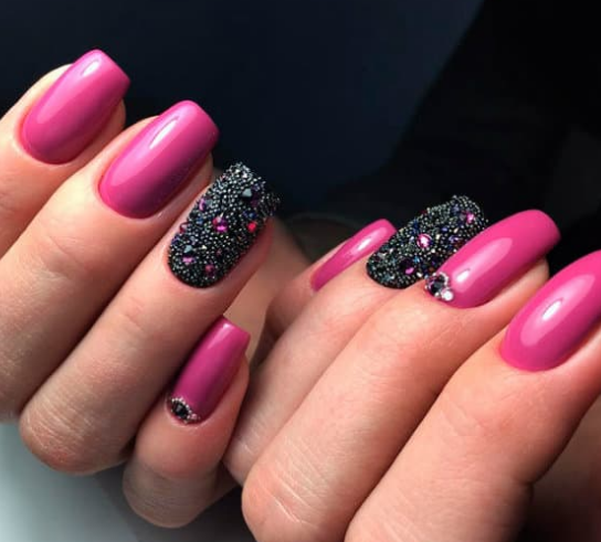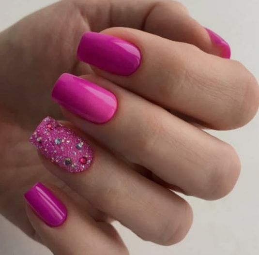 - Темно-розовый маникюр на короткие ногти