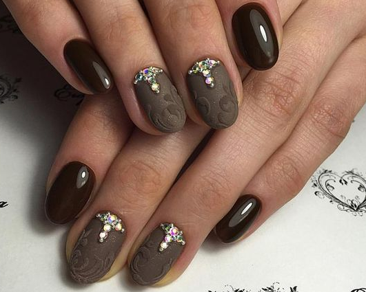 Данный оттенок универсальный, он будет прекрасно смотреться в любом сезоне и ситуации. Благодаря огромному количеству трендовых новинок маникюр с использованием коричневого оттенка никогда не будет выглядеть унылым, тоскливым.