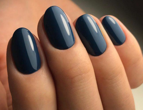 Темно-синий маникюр на короткие ногти
