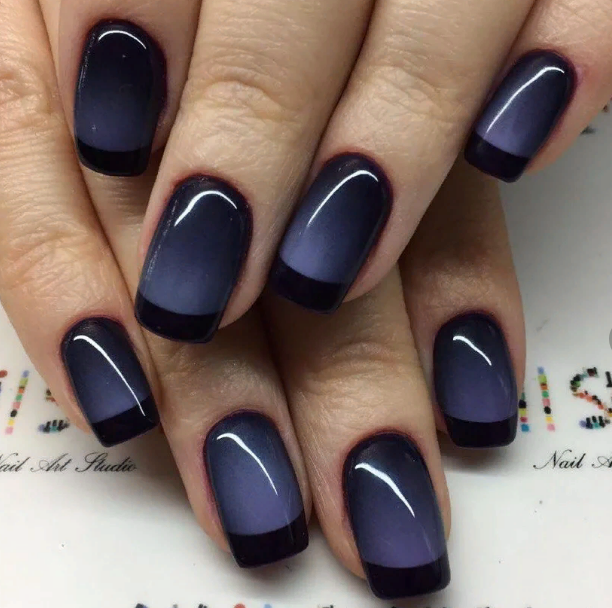 Вариантами темного маникюра на короткие квадратные ногти станут: