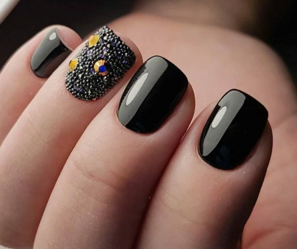 - Черный маникюр на короткие ногти