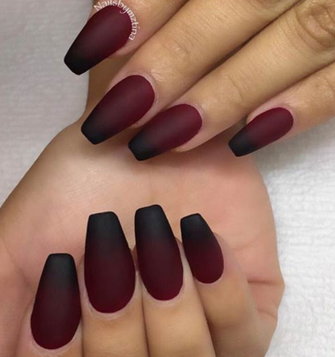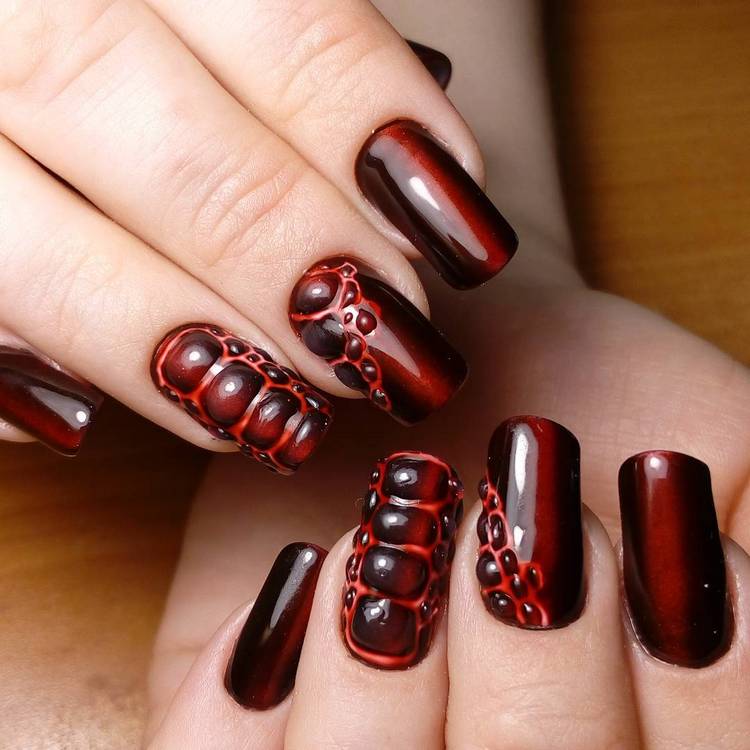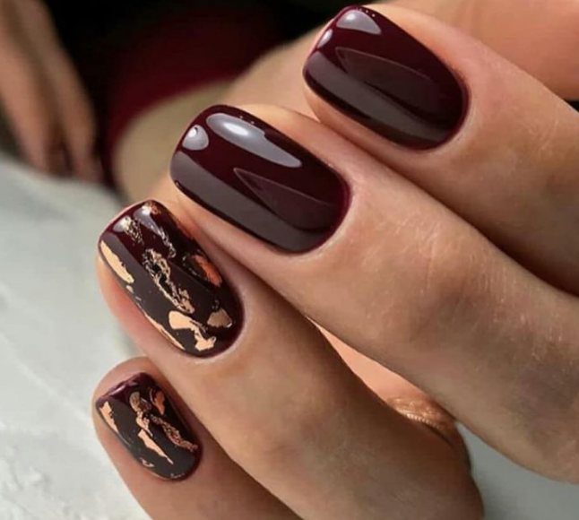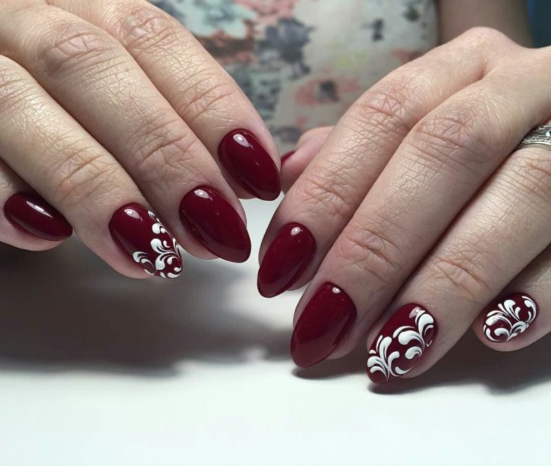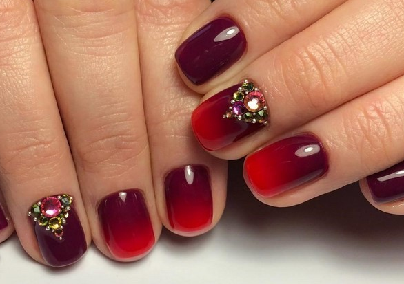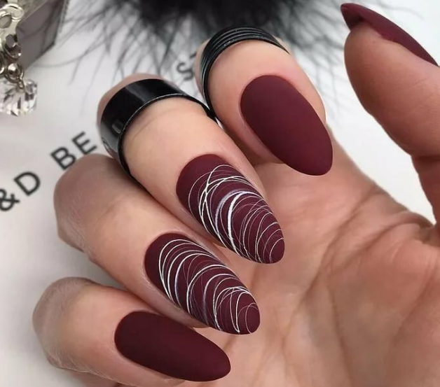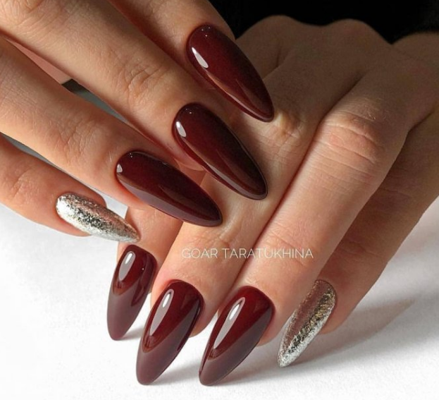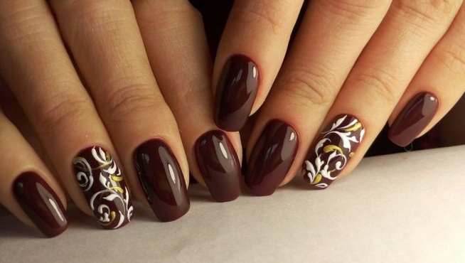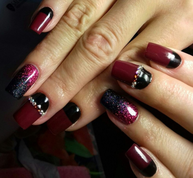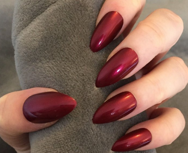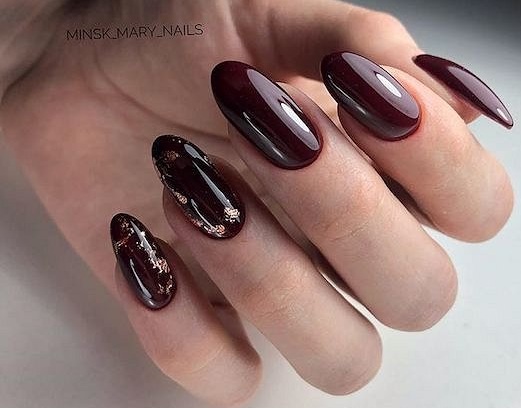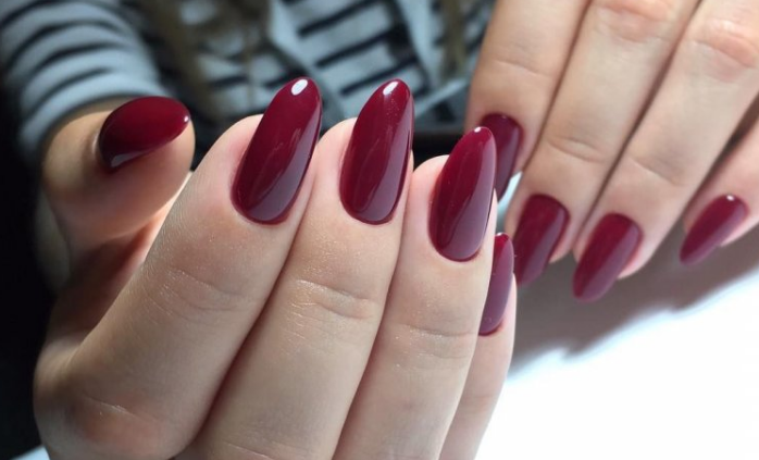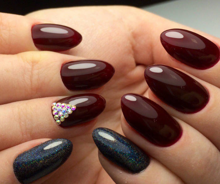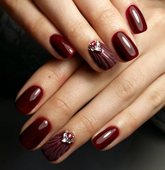 Оттенки красного — это классика маникюра. Но сейчас речь идет именно о темных тонах этого благородного цвета. Красный — страсть, огонь и яркость. Темные оттенки палитры — это приглушенный вариант красного, с помощью которого можно создать дизайн ногтей как для офиса, так и для праздника.