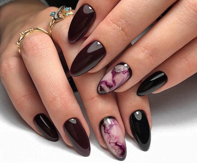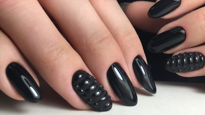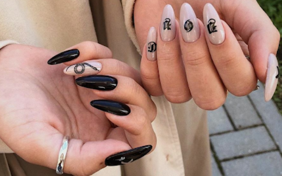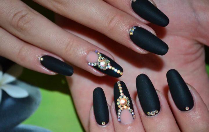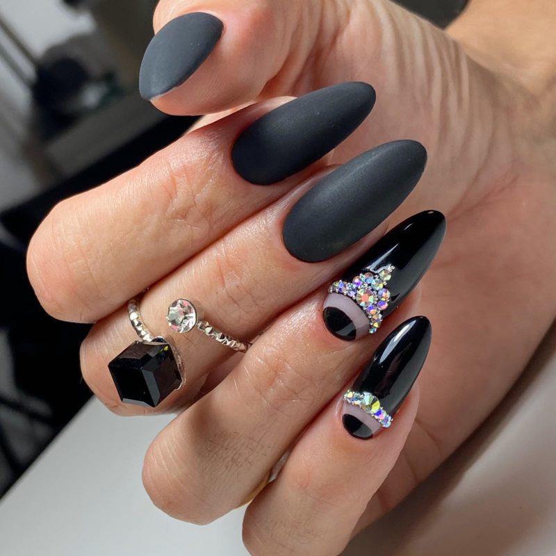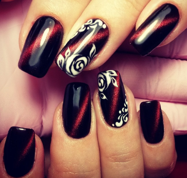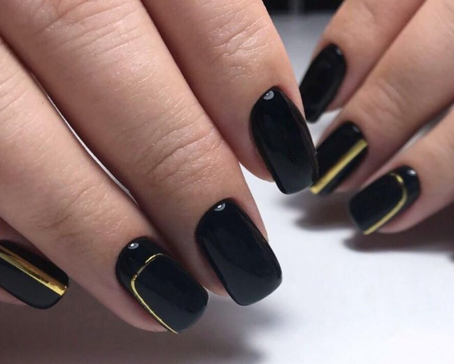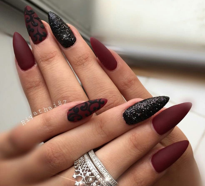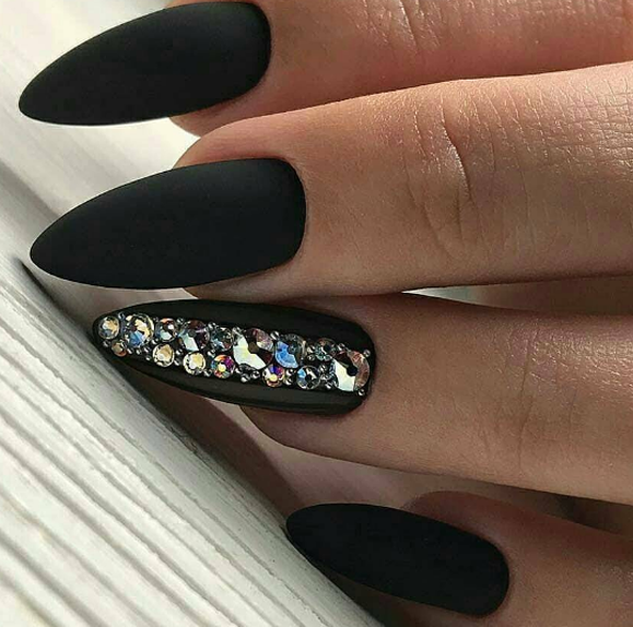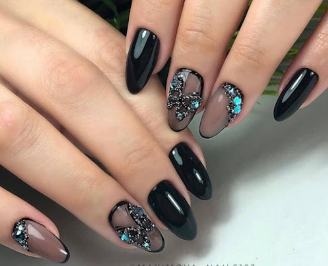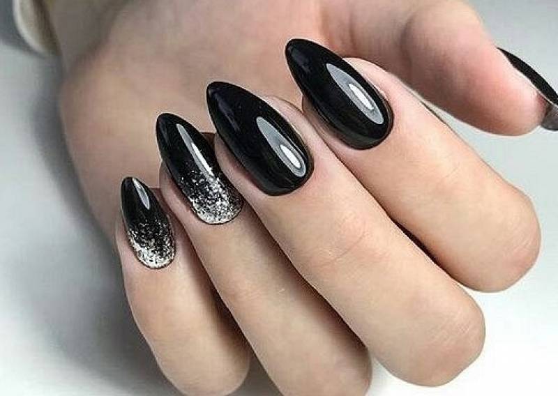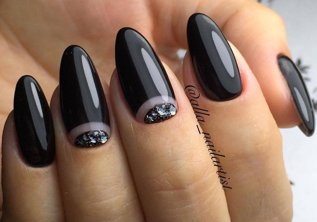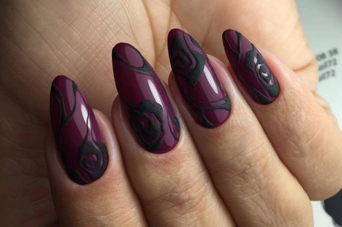 Темный маникюр с дизайном: актуальная длина и форма ногтей