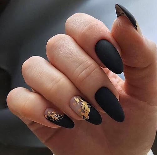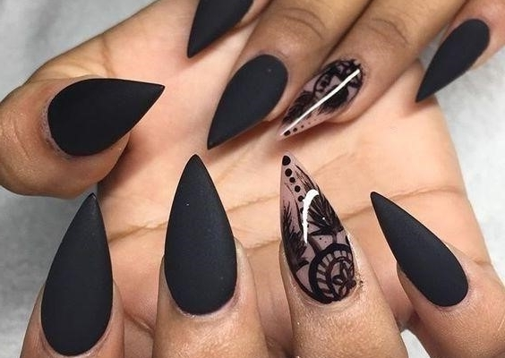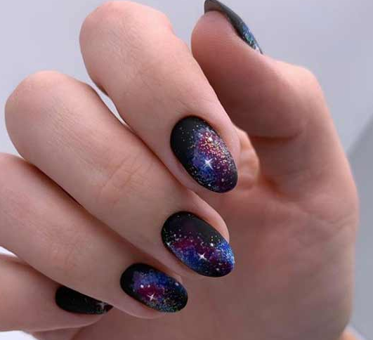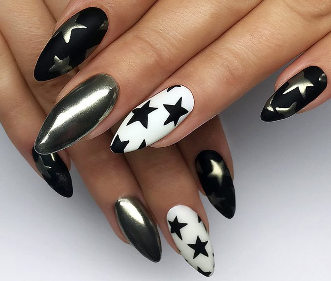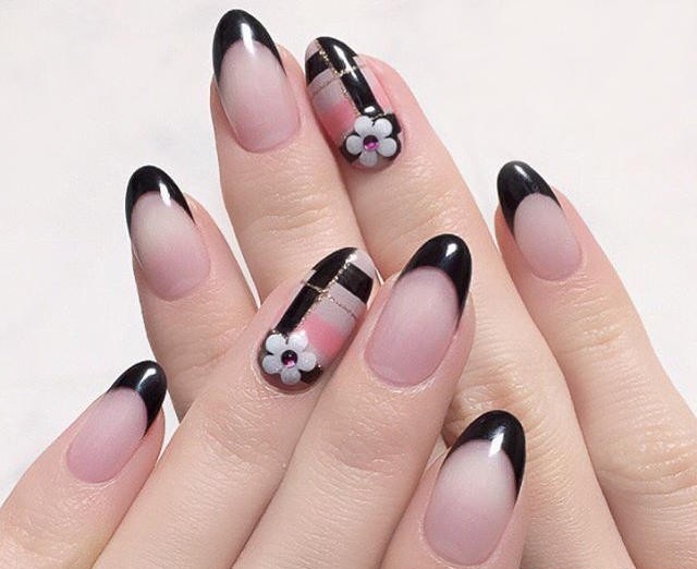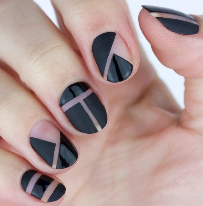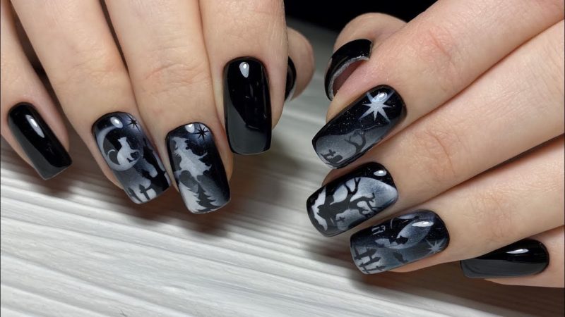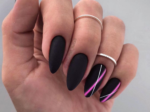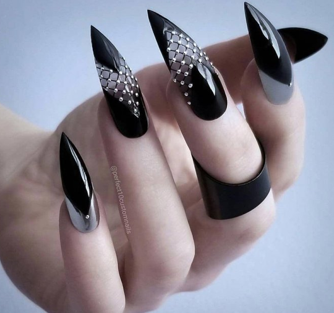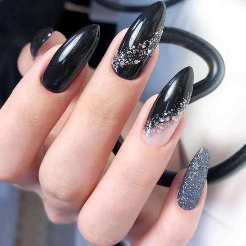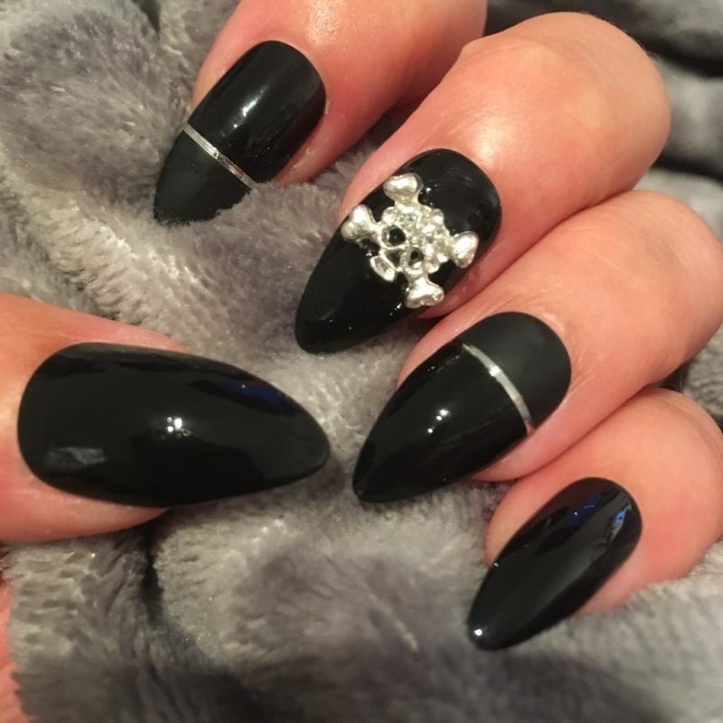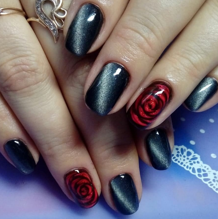 Темный маникюр с дизайном: актуальная длина и форма ногтей