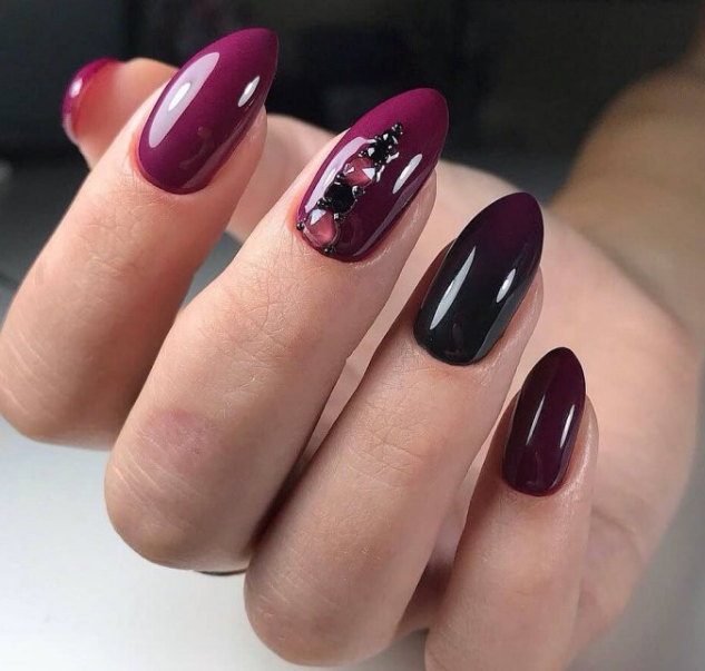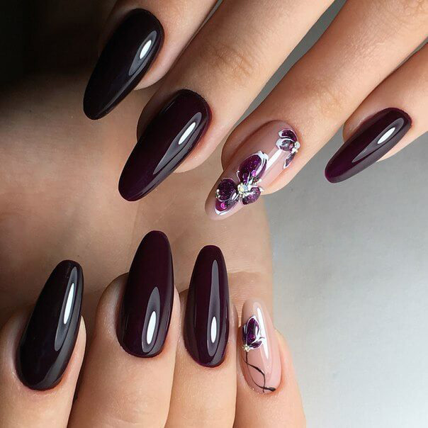 Глубокие густые цвета всегда привлекают внимание. Они подходят для любой длины и формы пластины. Некоторые ограничения могут касаться только дизайна ногтей.