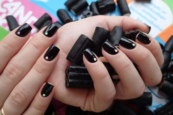 Интересно: палитры темных цветов очень многообразны. Не исключение и черный. В его палитре более 15 тонов. Среди них такие как — сигнально-черный, синевато-черный, пурпурно-черный, очень темный зеленый и др. ТО есть для маникюра можно выбрать не только классический вариант цвета, но и его оттенки.