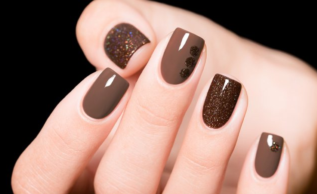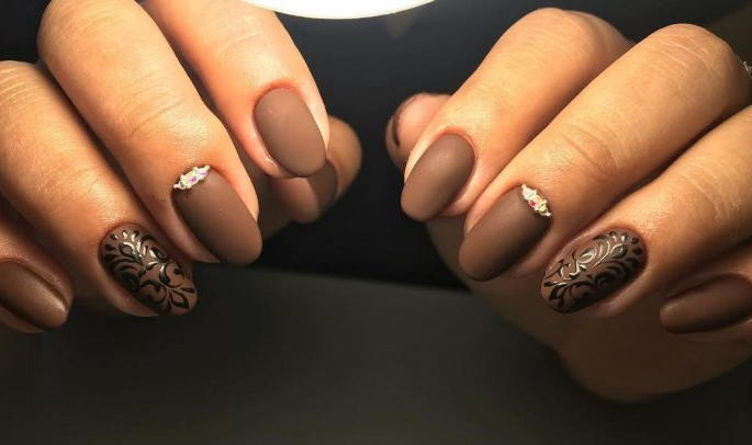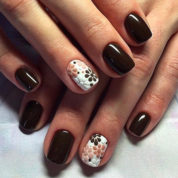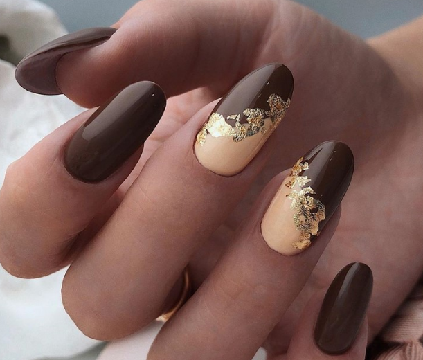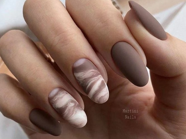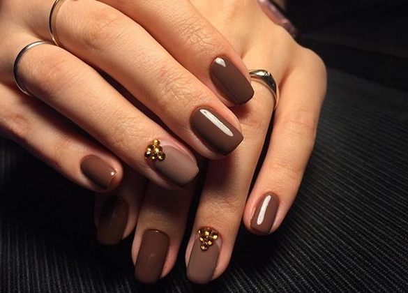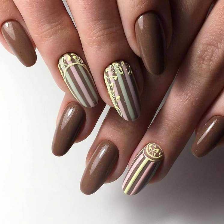 Совет: актуальный дизайн — разные пальчики. Вы можете оформить ногти в разные оттенки коричневого, включив в него один-два бежевых.