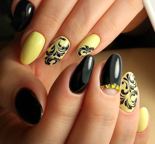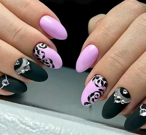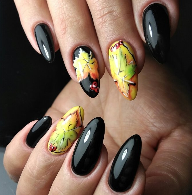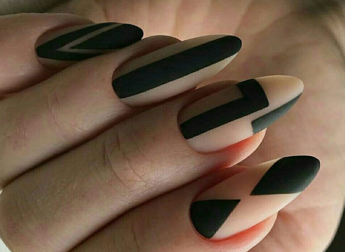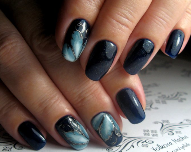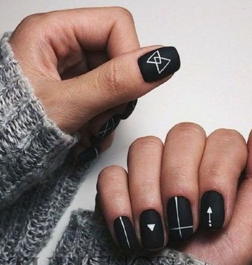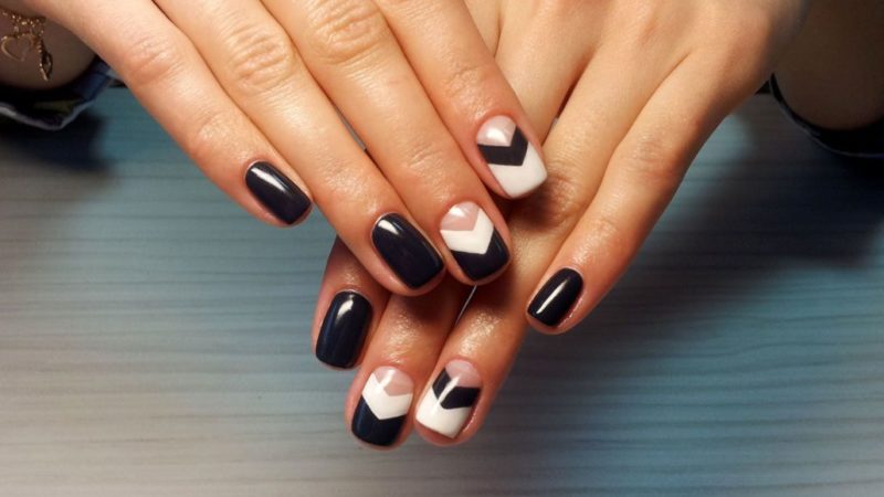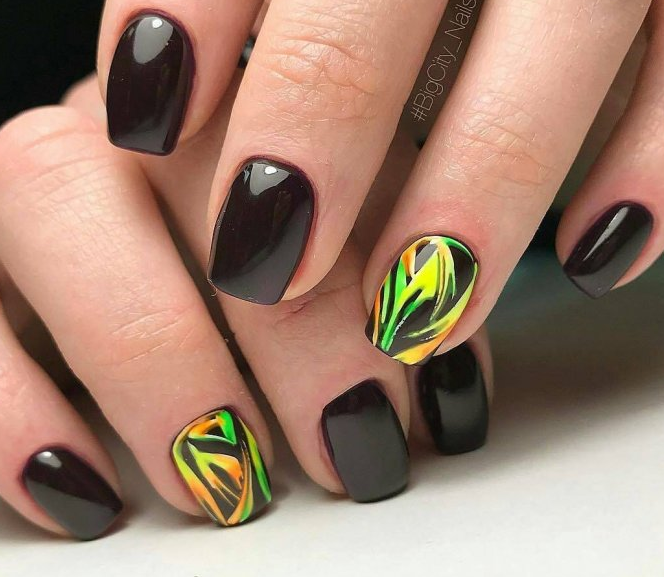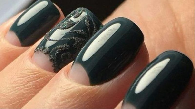 - Темный маникюр с дизайном: актуальная длина и форма ногтей