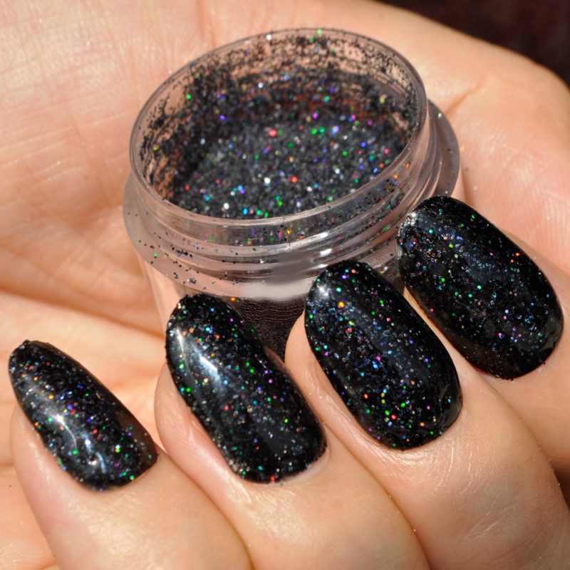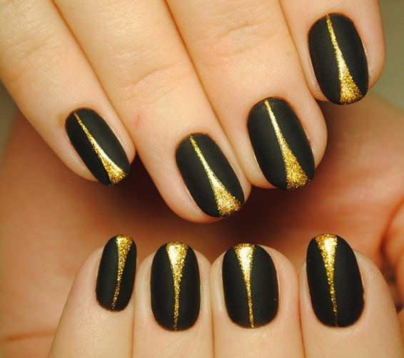 Яркая втирка и темный лак — идеальный тандем. Классика — цвет золота или серебра, которые создают металлический эффект. Но можно подобрать втирку и в тон основному цвету — розовый, медный, бирюза, зеленый и др.
