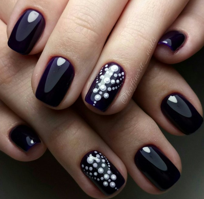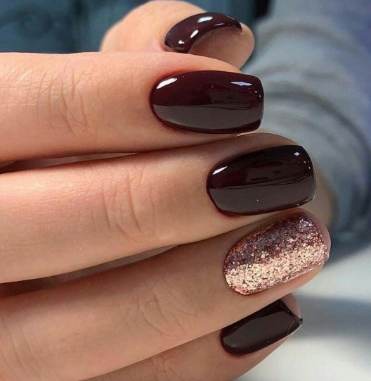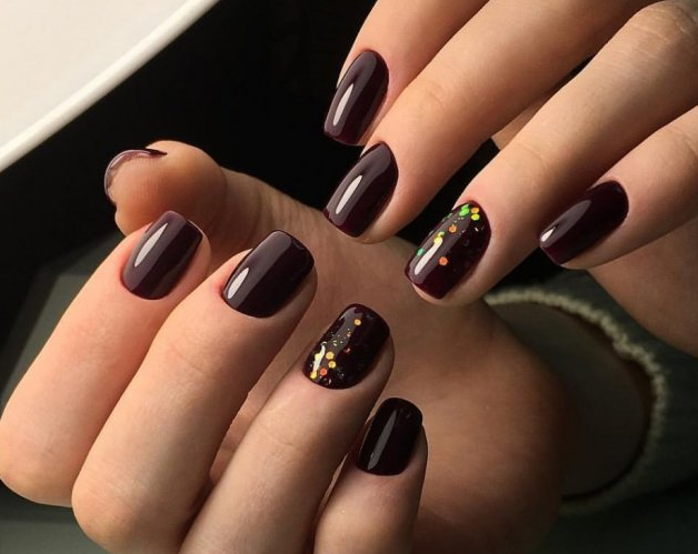 Для коротких ногтей можно выбрать любой из темных цветов. Это только подчеркнет ухоженность и хороший вкус хозяйки маникюра. Удивительное свойство темного однотонного покрытия — универсальность. Он одинаково богато смотрится в дневное время, но подойдет и для вечера — веселого праздника или официального раута. Дизайн может быть любым.