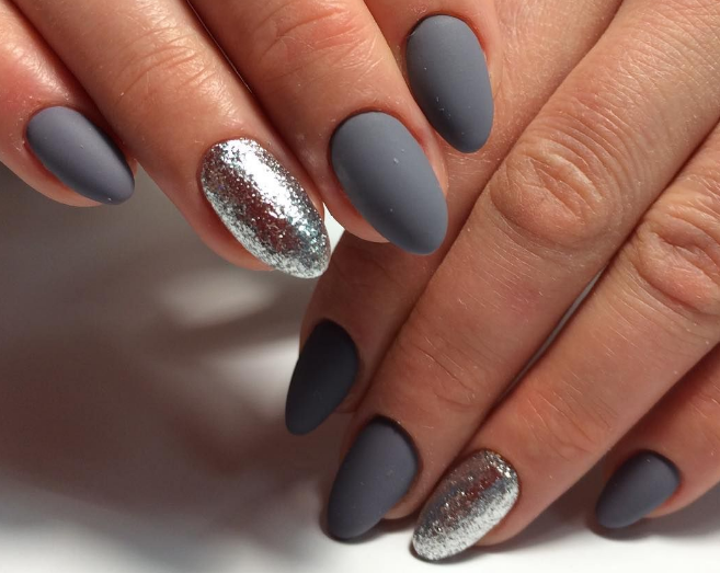 Это универсальный и непритязательный темный цвет — сочетается со всеми оттенками, даже самыми смелыми и яркими. Как правило, графитовый или темный серый мастера выбирают в качестве базы для дизайна ногтей.
