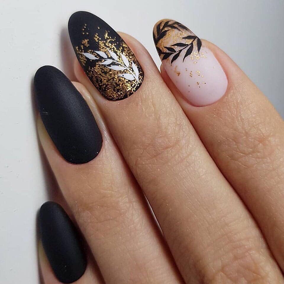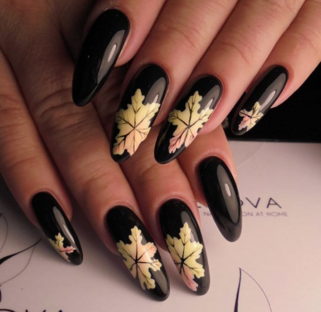 Не просто так появилось словосочетание «золотая осень». Не хотите рисовать на ногтях зеленые или красные листочки? Сделайте их золотыми. Это беспроигрышный вариант. Золото отлично сочетается с любым оттенком лака — от нюдового до черного. Какой вид листочков вы выберете не имеет значения. В золотом исполнении любой из них будет смотреться здорово.