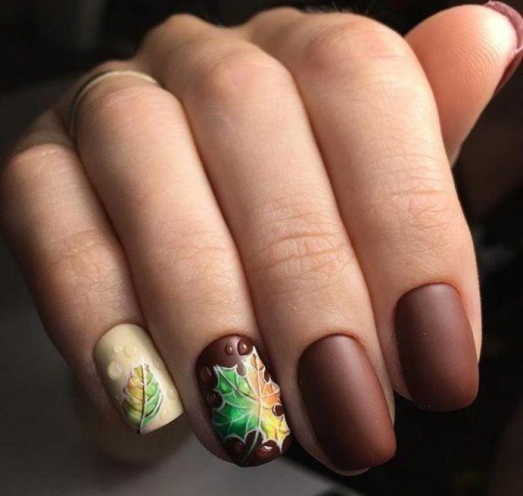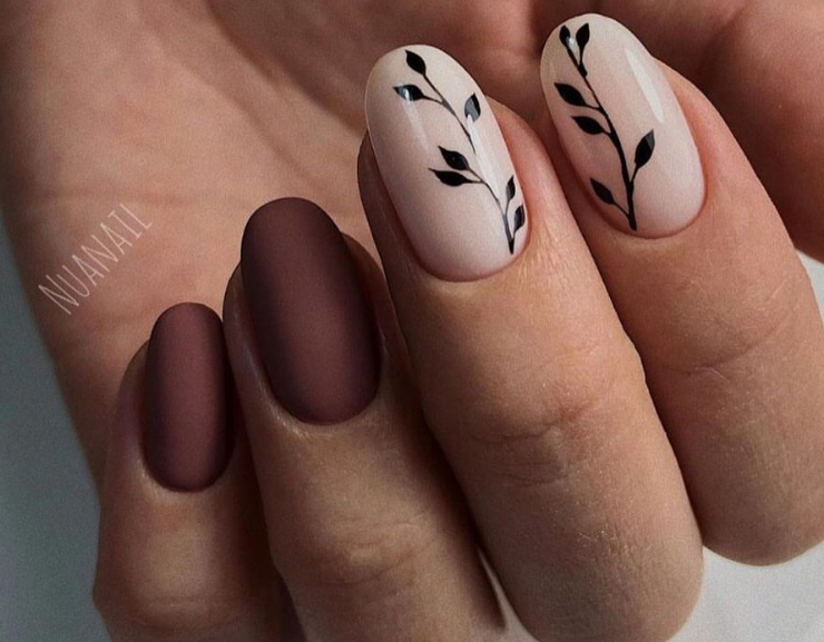 Многие считают этот оттенок скучным, но шоколадные ногти давно входят в топ идей для маникюра. Причем цвет имеет статус всесезонного. Главное — правильно подобрать оттенок. На коричневом фоне отлично смотрятся как зеленые тропические листья, так и осенние ветки, ягоды и зонтики.