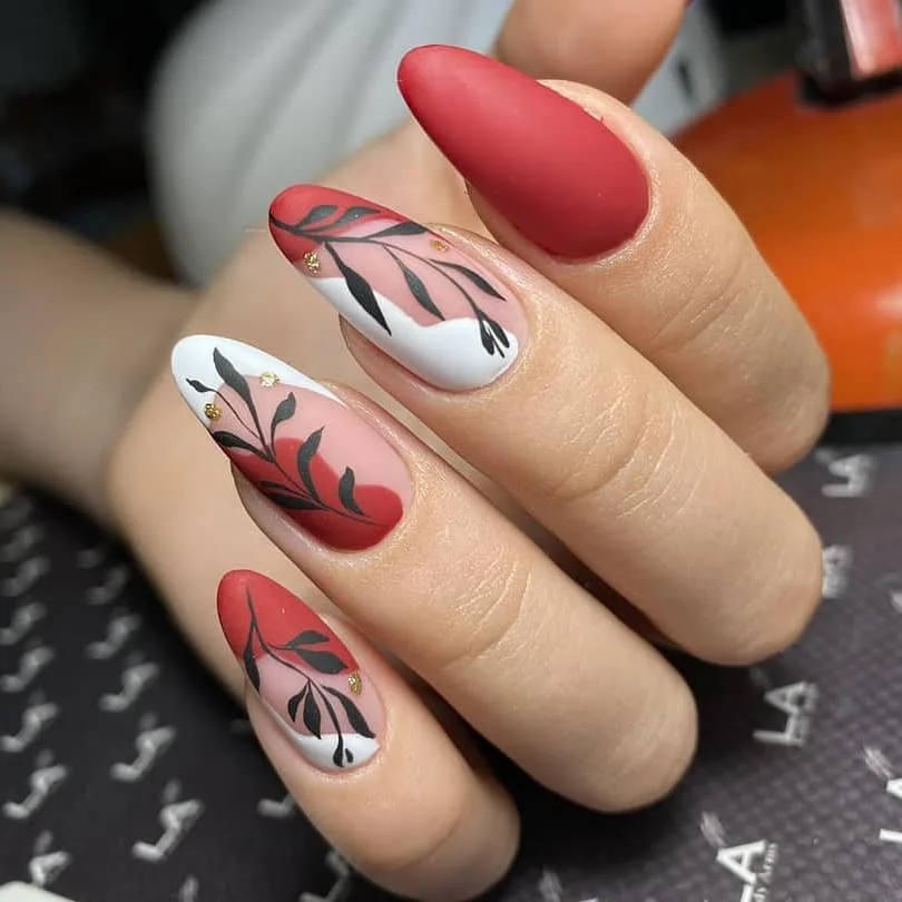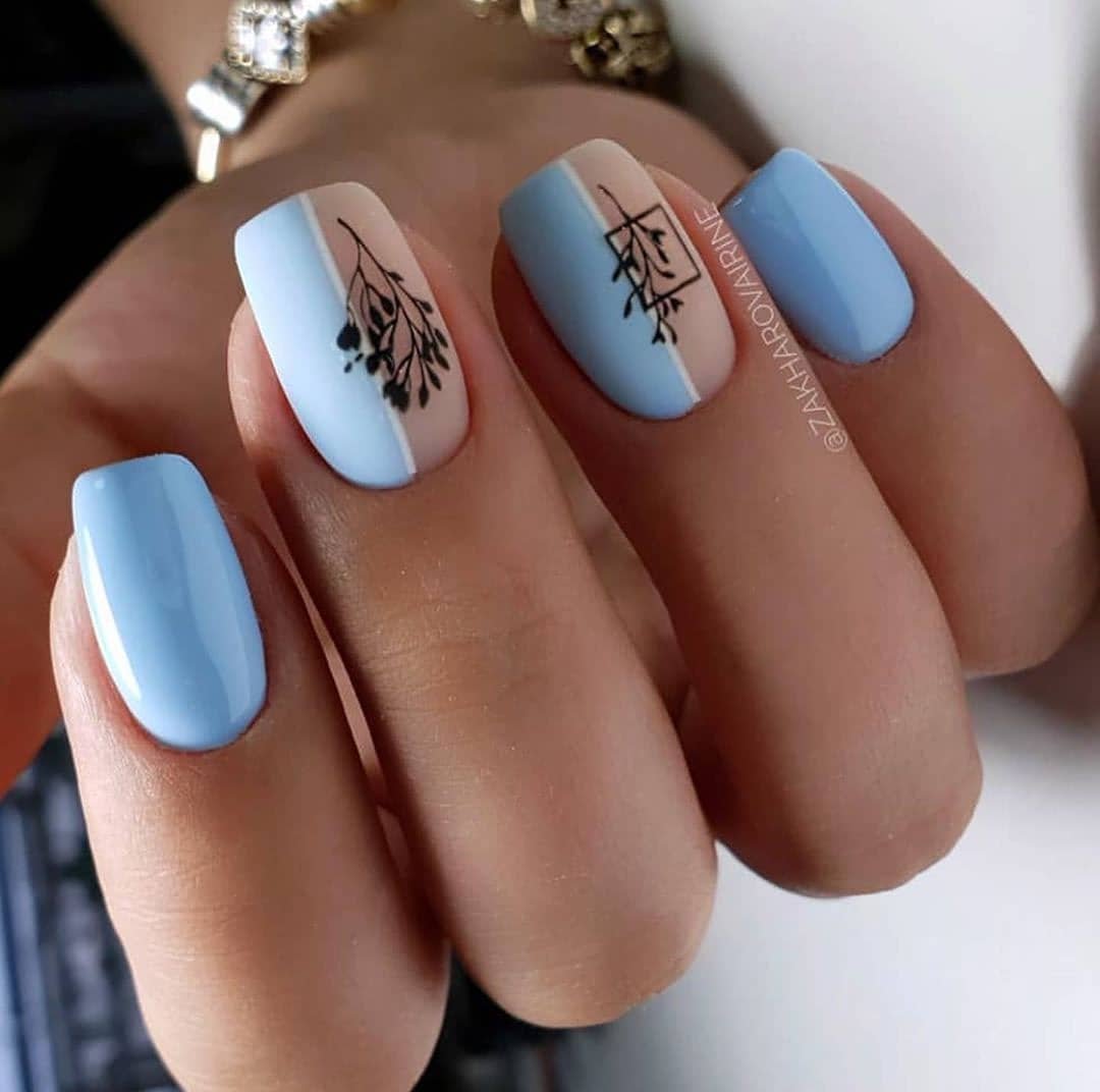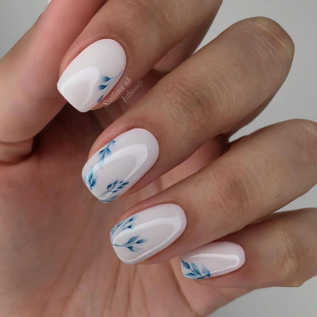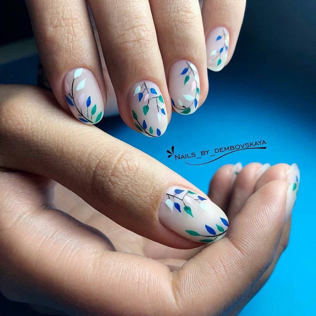 Принт «ветки с листьями» — один из самых модных вариантов нейл-арта в сезоне 2026. Веточку в состоянии нарисовать даже тот, кто никогда не держал в руках кисть. Чтобы рисунок получился более интересным, добавляйте датели — прорисовывайте контур несколькими цветами, используйте пудру и дополняйте его наклейками.