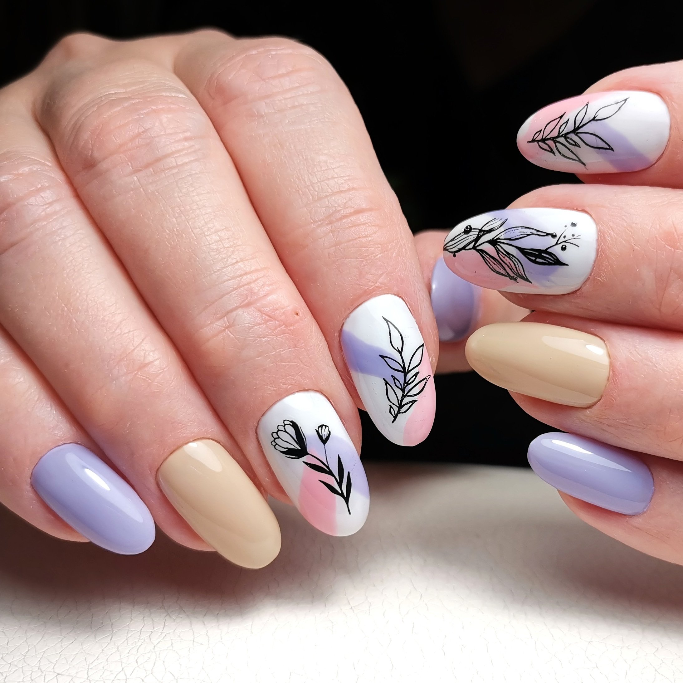 Для овальной формы стоит выбирать мелкие рисунки. Ваша задача подчеркнуть нежность и женственность такой формы ногтя. Крупные детали займут слишком много места и скроют изящную форму ноготков.