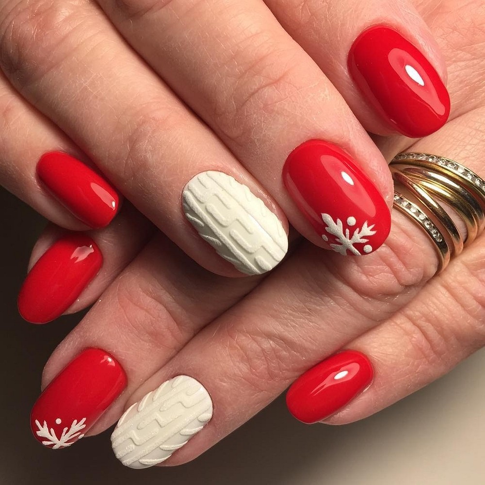 Совет: если хотите сделать универсальный зимний маникюр, выбирайте именно вязку. Перед самыми праздниками просто добавьте немного блеска или страз и дизайн сразу превратиться в торжественный.