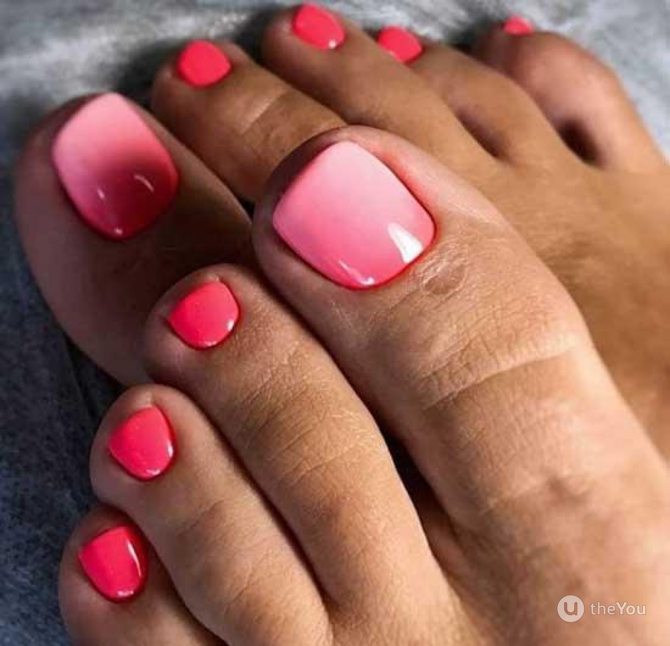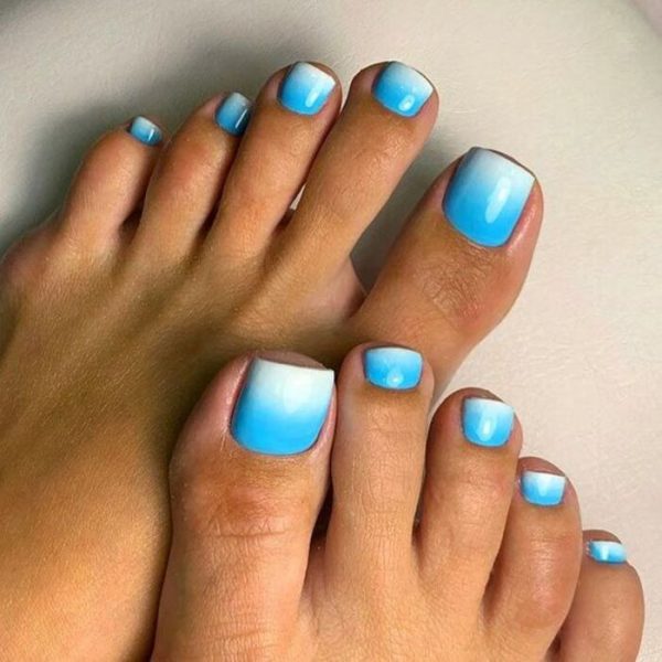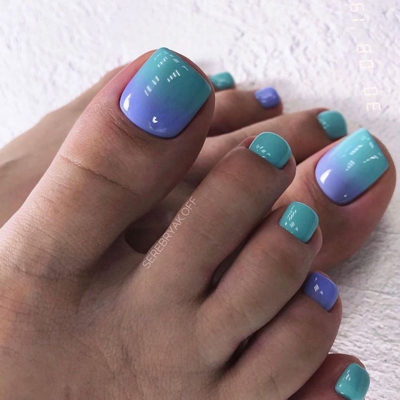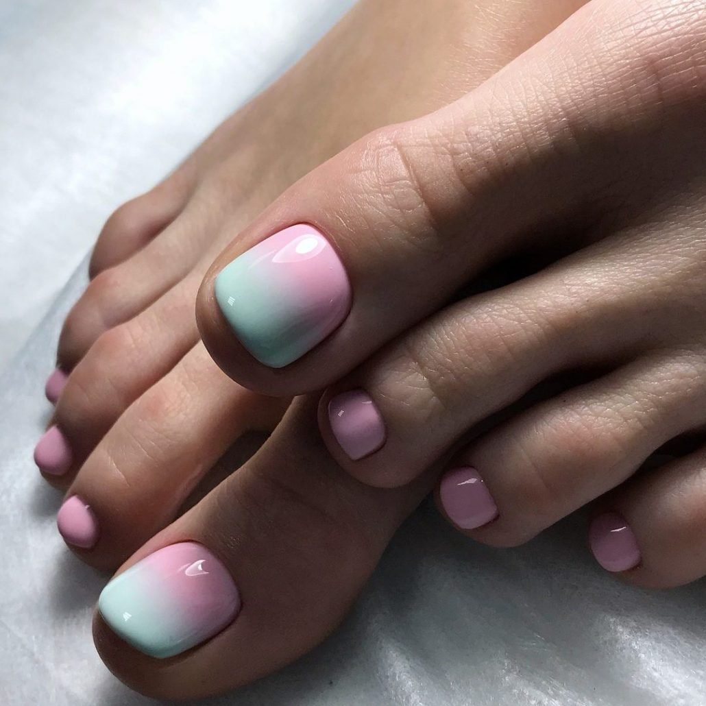 Омбре и градиент присутствует не только на голове у девушек, но и на ногтях. Переходы могут быть различные: используются яркие тона, а также приглушенные и нежные. Некоторые мастера предлагают сочетать абсолютно несочетаемые цвета, чтобы получить интересный вариант педикюра и создать классный образ на летний отдых.