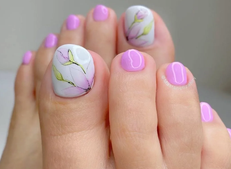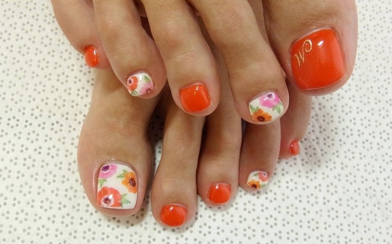 - Флористика в летнем педикюре