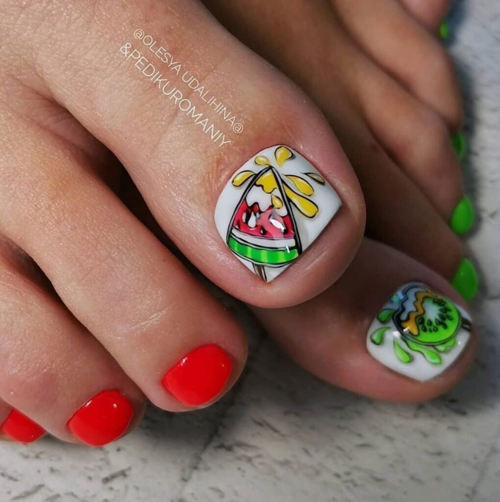 - Идеи дизайна для яркого летнего педикюра