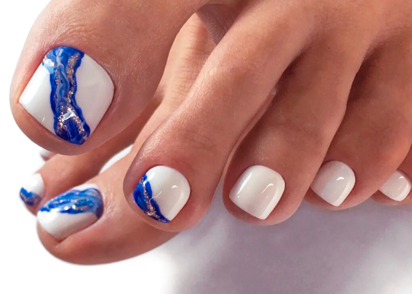 - Морская тема в педикюре