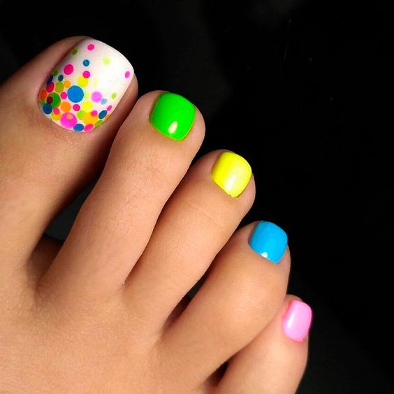 Разноцветный педикюр