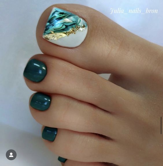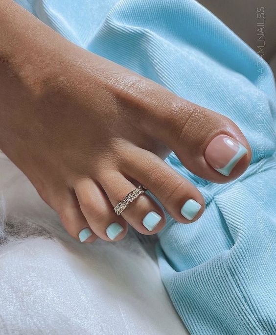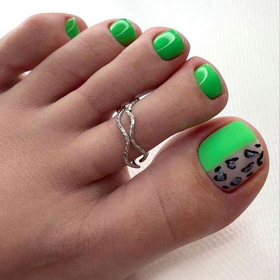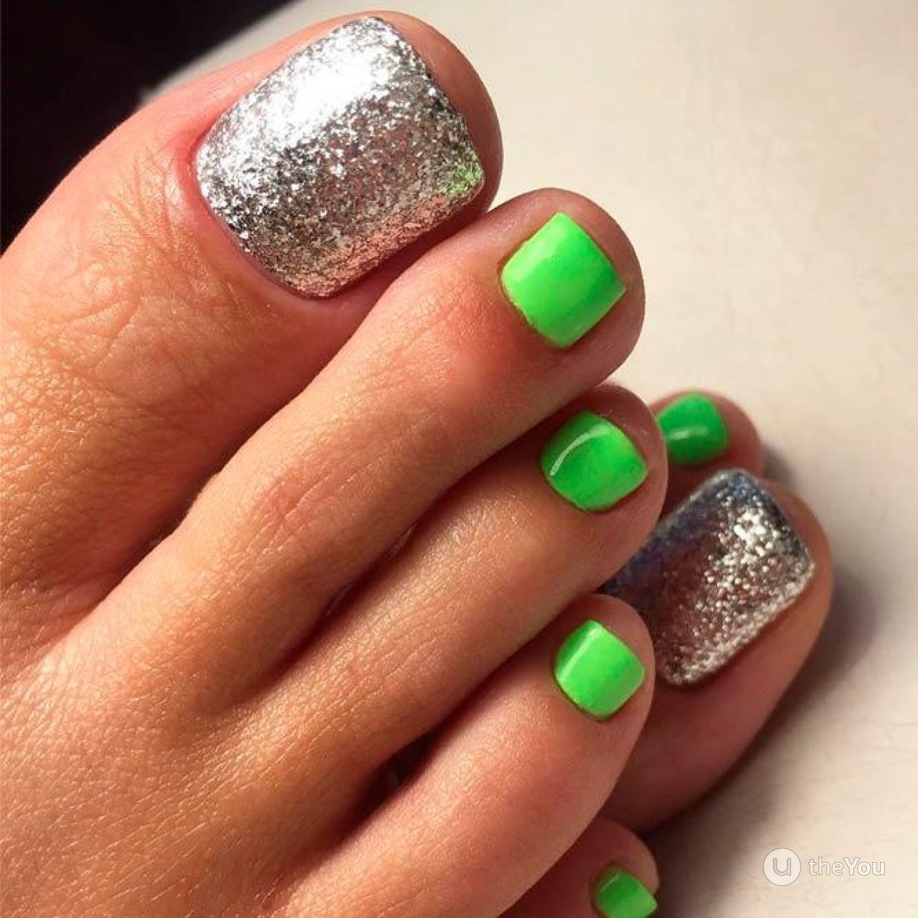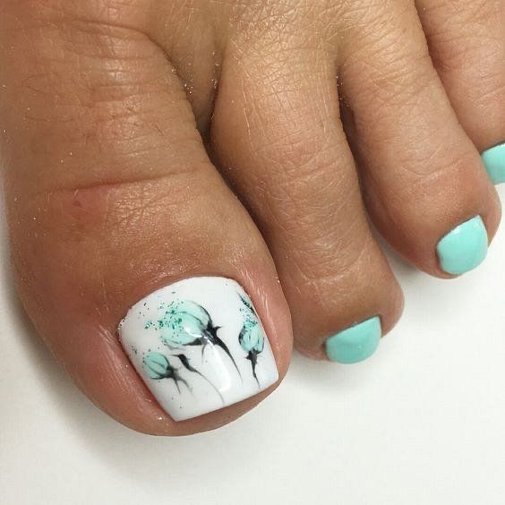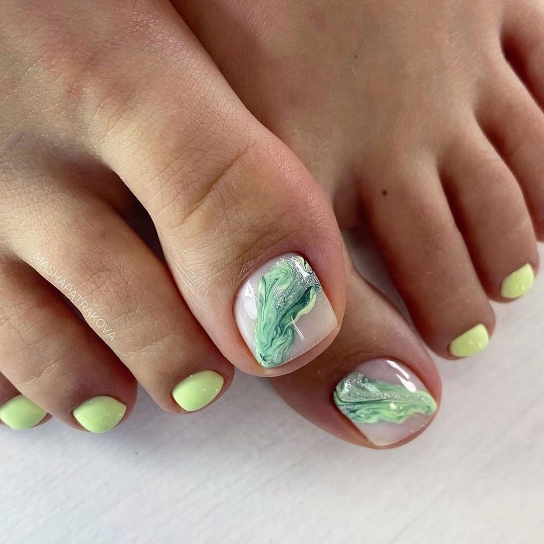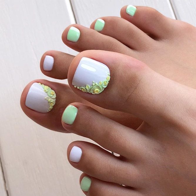 От чего — то наши модницы не очень уважают зеленый цвет при создании стильного педикюра и маникюра. Мы предлагаем обратить внимание в этом сезоне на мятные оттенки. Они могут быть очень нежными, практически белыми. Или очень яркими, напоминающими листики мяты. Этот оттенок отдает свежестью, прекрасно подойдет, как для летних деньков, так для зимнего педикюра. Кроме того, он отлично сочетается с такими сложными оттенками, как желтый, розовый и лаванда.