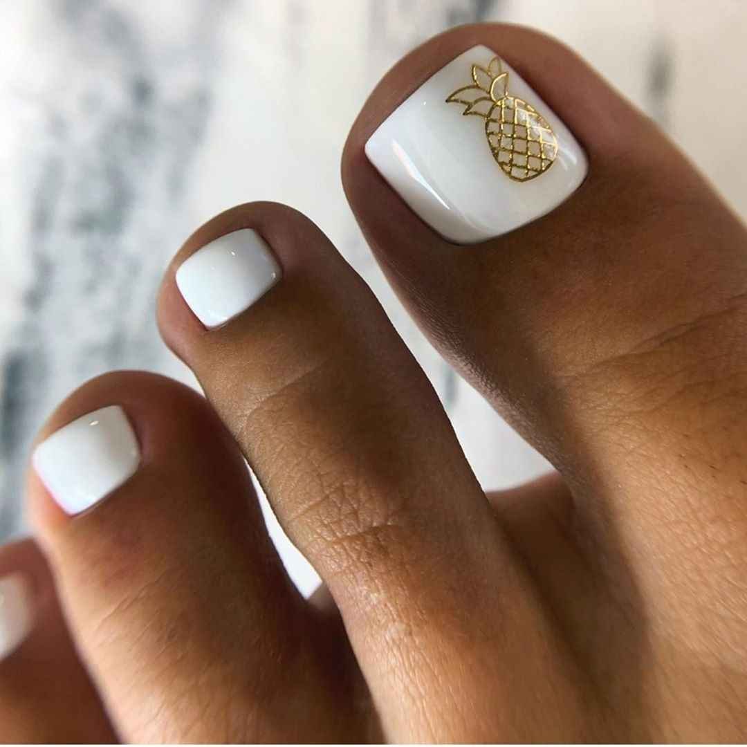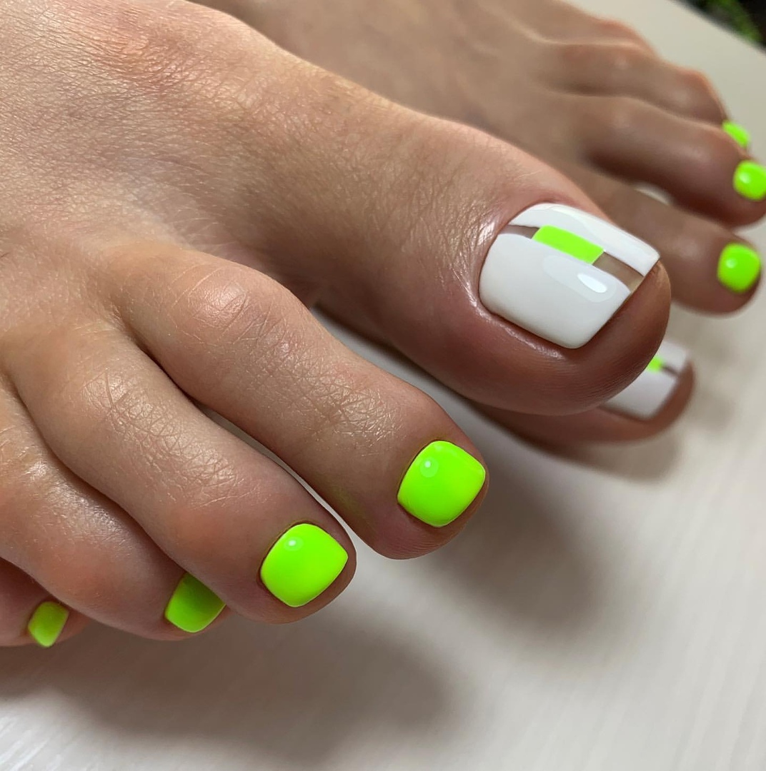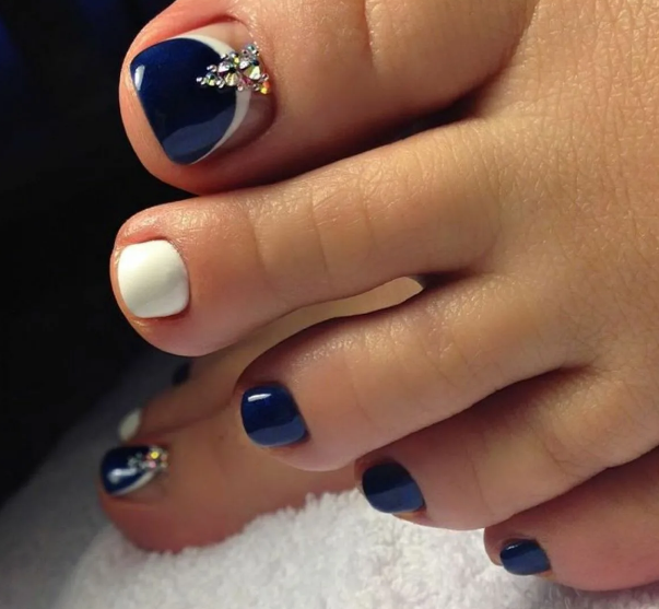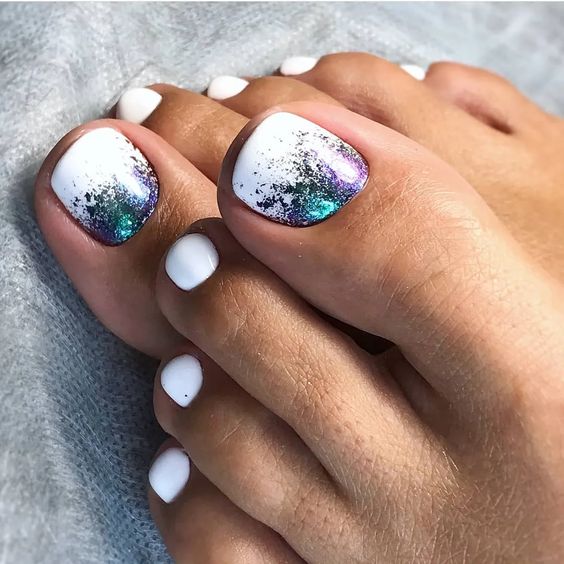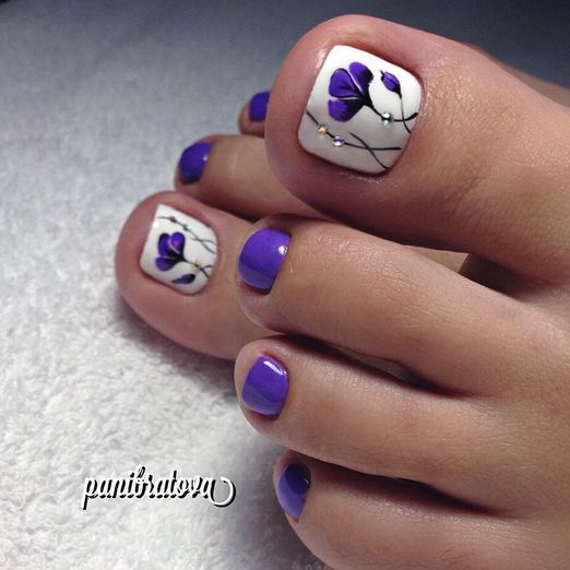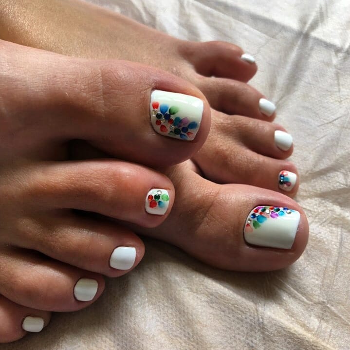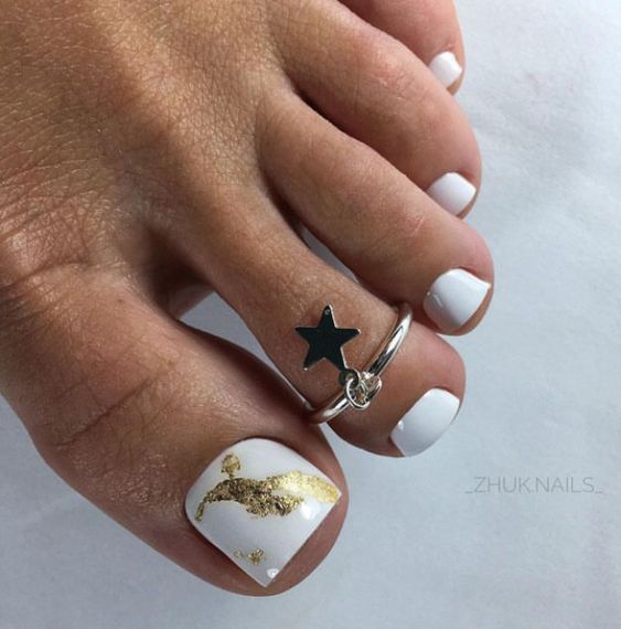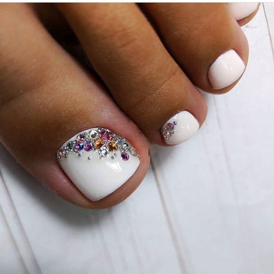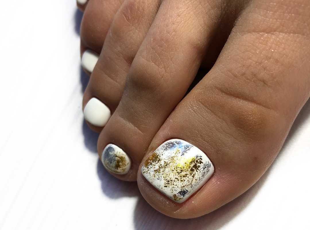 Белый, несомненно, цвет чистоты и свежести. Кроме того, это бесспорный тренд сезона. Вы думаете, что с помощью белого лака не сможете создать яркий педикюр? Ошибаетесь. Этот классический оттенок подойдет большинству образов. Блестящими деталями — то получится очень яркий и стильный педикюр. Он отлично сочетается с блестящим декором, золотом и серебром, любым другим цветом основной палитры. Обязательно миксуйте цвета, фантазируйте и создавайте яркие картины на своих ногтях.